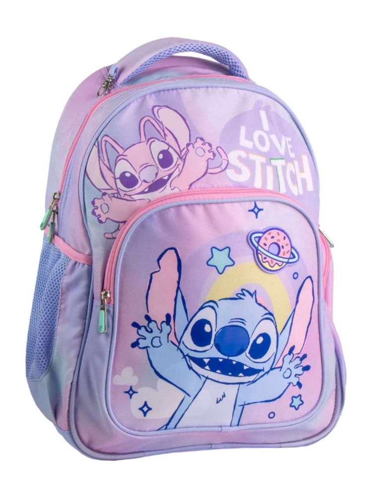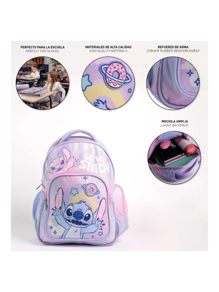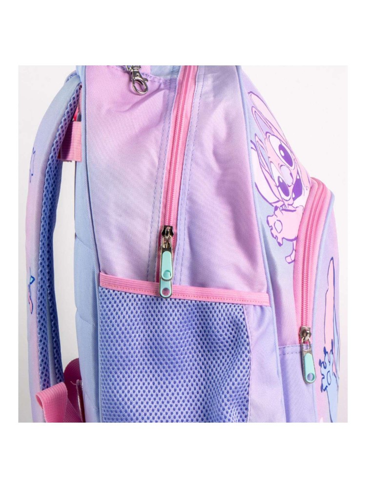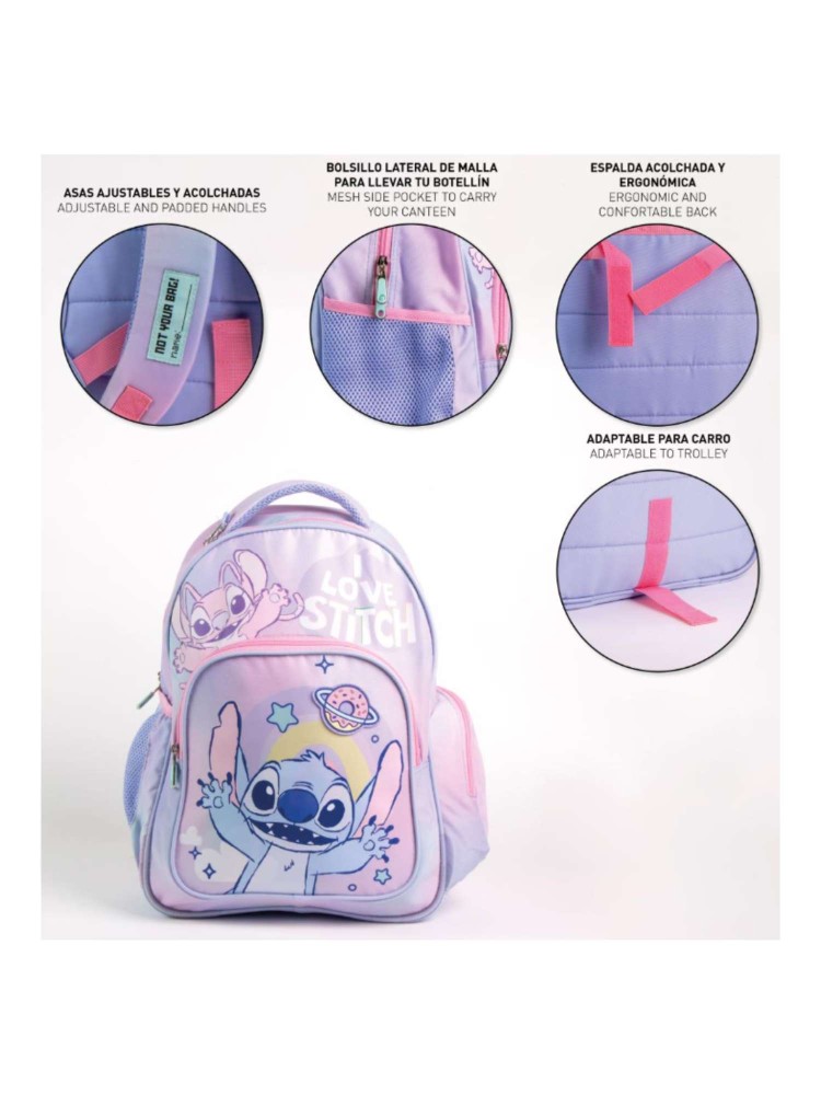 Mochila escolar mediana Stitch. Cierre de cremallera. Color lila. 100%POLYESTER. Medidas: 32.0 X 5.5 X 45.0 CM