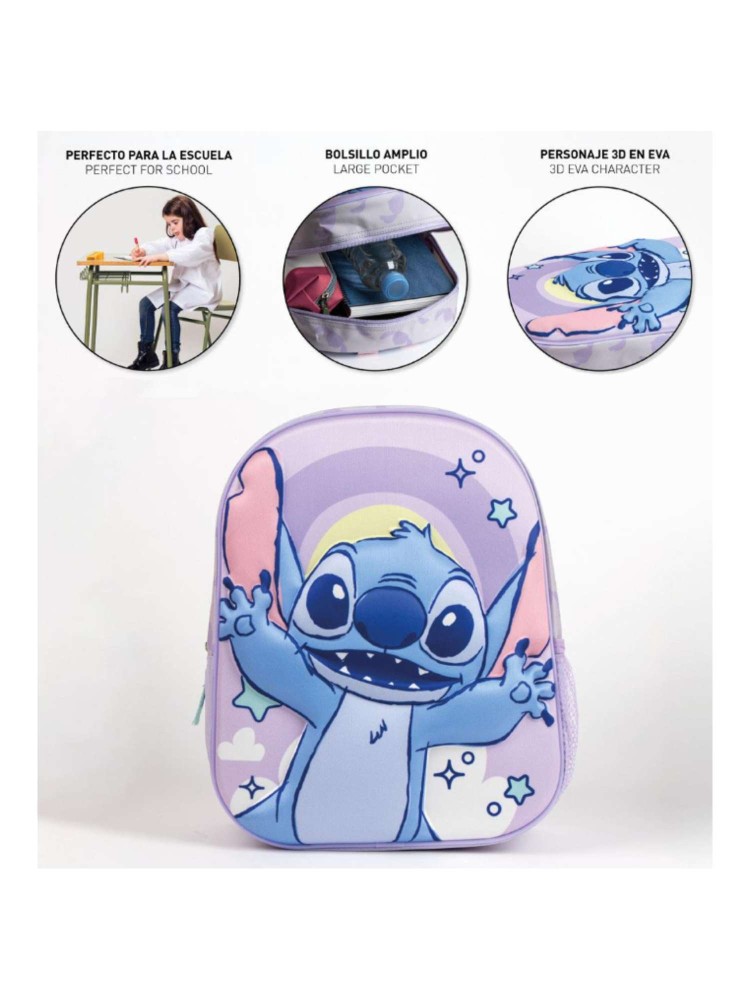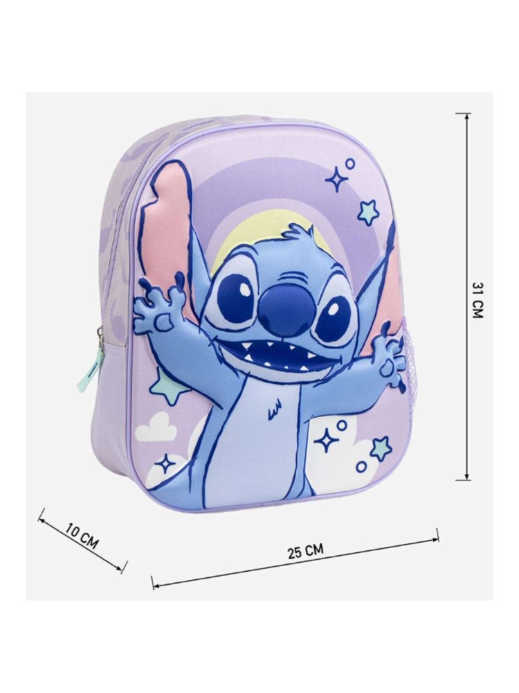 Mochila colegial infantil 3D Stitch. Cierre de cremallera. Medidas: 25.0 X 31.0 X 10.0 CM