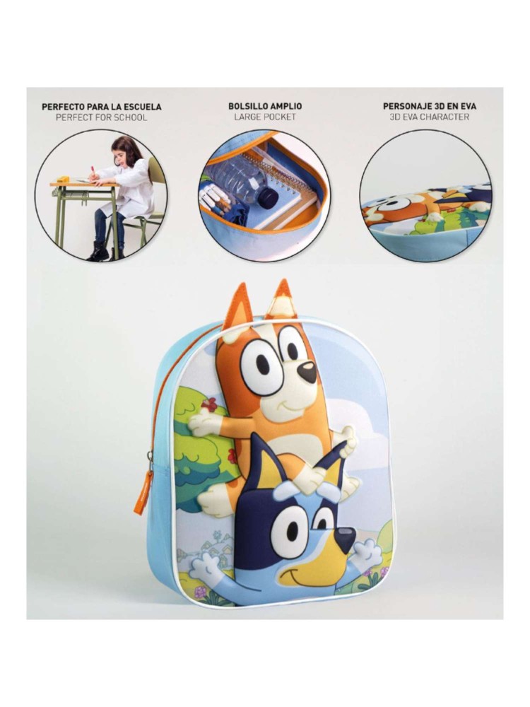 Mochila colegial infantil 3D Bluey. Cierre de cremallera. Medidas: 22.0 X 27.0 X 10.0 CM