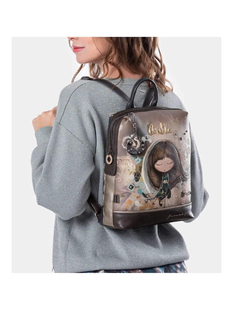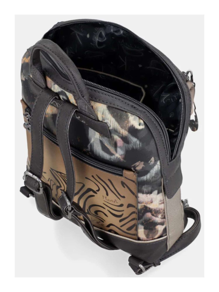 Bolso mochila con cierre de cremallera. Bolsillos en interior y parte trasera. Medidas (Largo x Alto x Ancho): 24 cm/29 cm/8 cm.