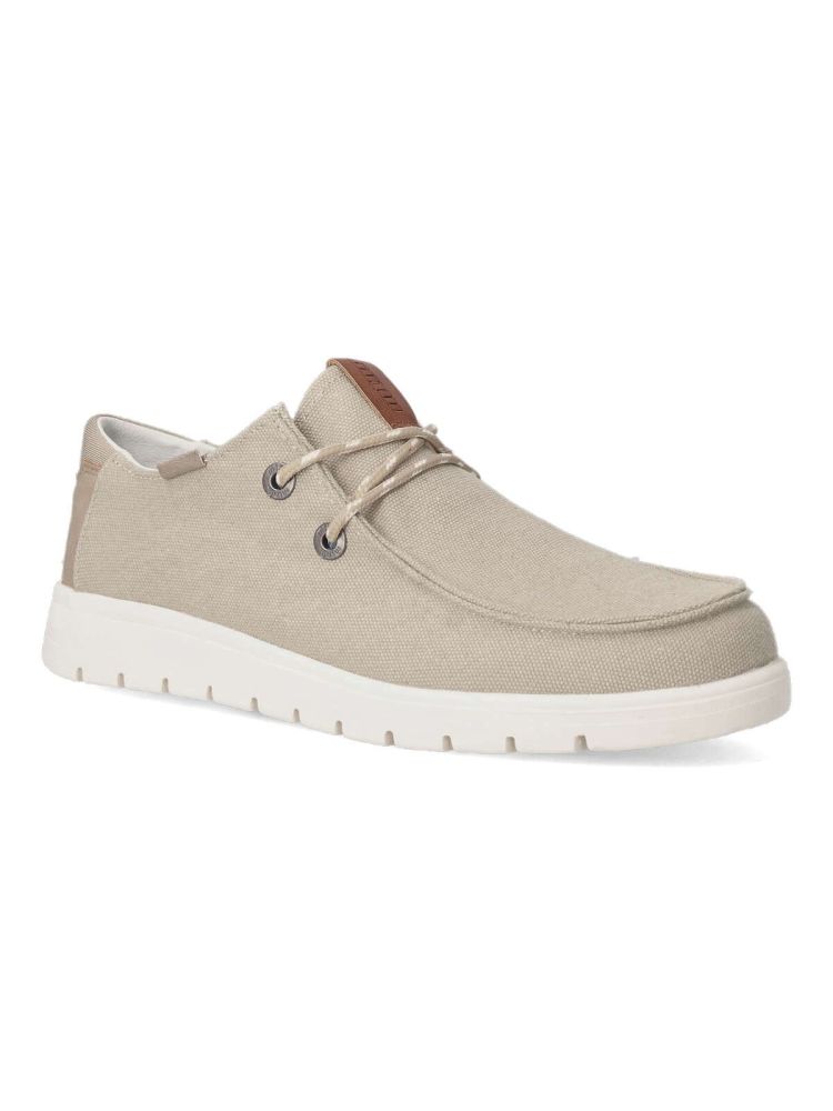 Zapato wallabee lona de hombre, estilo casual. Suela de phylon ligera. Plantilla acolchada y extraíble Confort Foam. Color beige. Modelo cómodo, ligero, flexible y transpirable, ideal para combinar en tu día a día. Mustang.