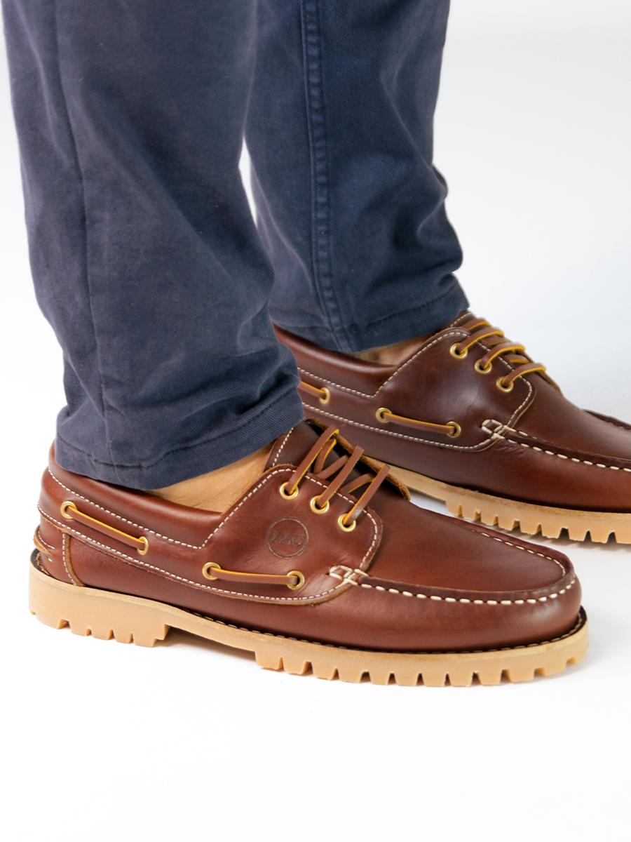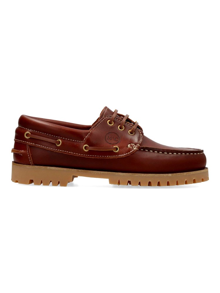 Zapato náutico de hombre, con cierre de cordones. Clásico náutico de piel, con suela de goma. Revestimiento y plantilla de piel. Color cuero. Una pieza imprescindible en cualquier armario. Comodidad absoluta. MAC.