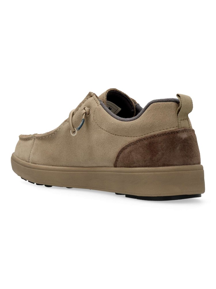 Wallabee de hombre, con cordón elástico. Fabricado en piel serraje hidrofugado, repelente al agua. Suela de EVA. Plantilla de piel extra gruesa, extraíble, transpirable y anti-humedad. Zapato muy ligero y caliente incluso en los días más fríos.