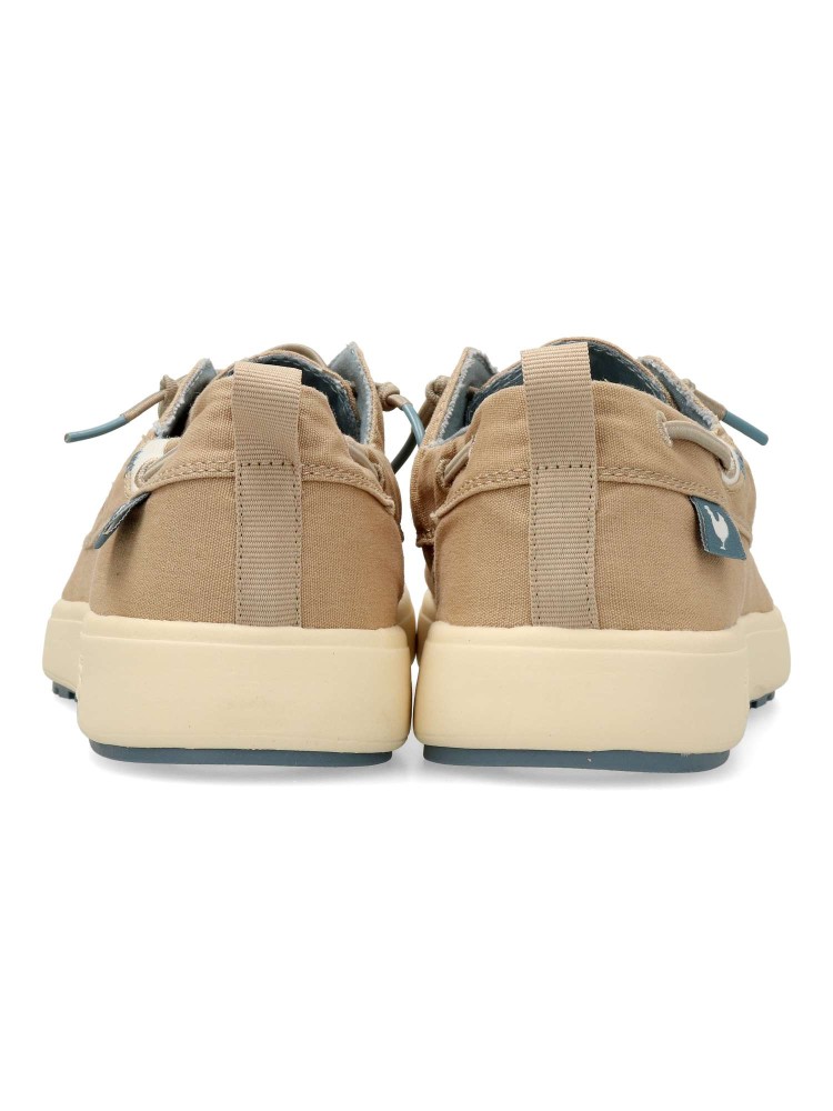 Zapato náutico de lona, sencillo y con personalidad. Naútico de líneas clásicas, muy cómodo y ligero y con un toque informal. Fabricado en algodón lavado, con suela Coast de EVA, flexible, ligera y antideslizante. Plantilla ergonómica forrada en piel.