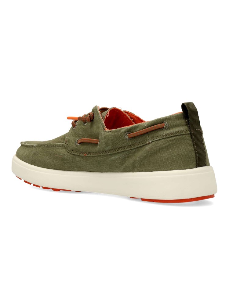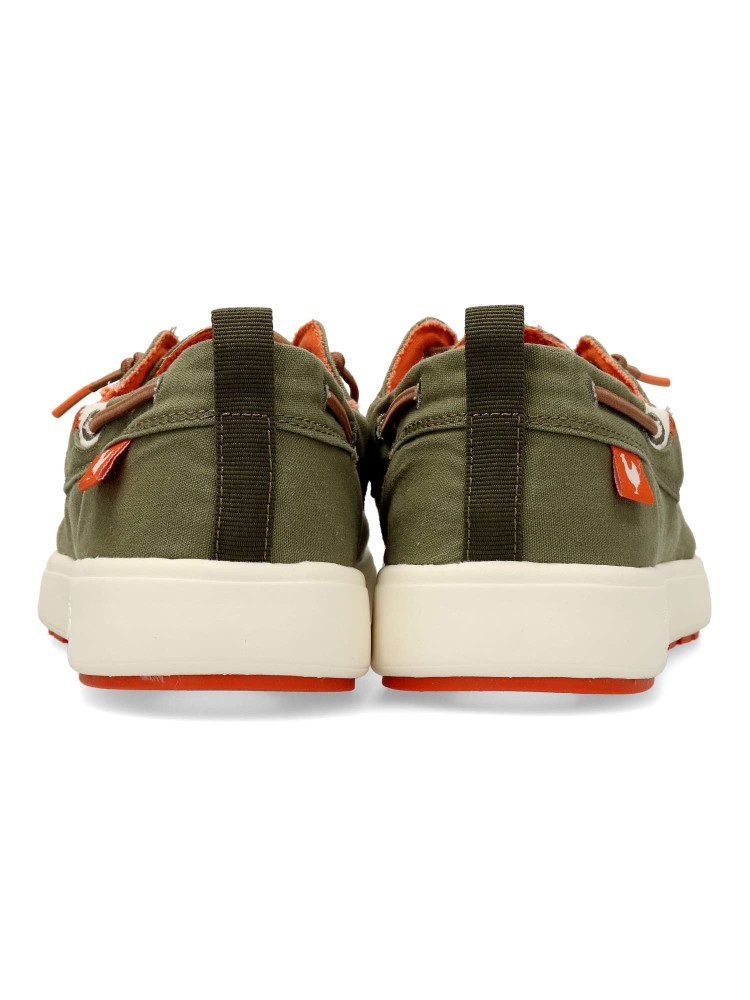 Zapato náutico de lona, sencillo y con personalidad. Naútico de líneas clásicas, muy cómodo y ligero y con un toque informal. Fabricado en algodón lavado, con suela Coast de EVA, flexible, ligera y antideslizante. Plantilla ergonómica forrada en piel.