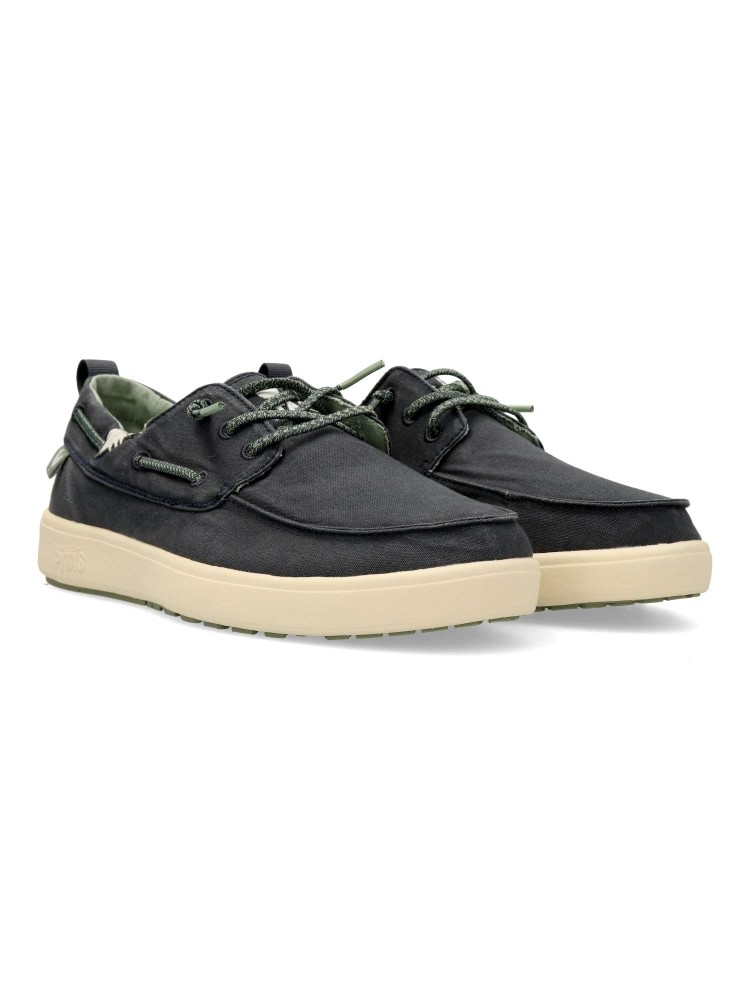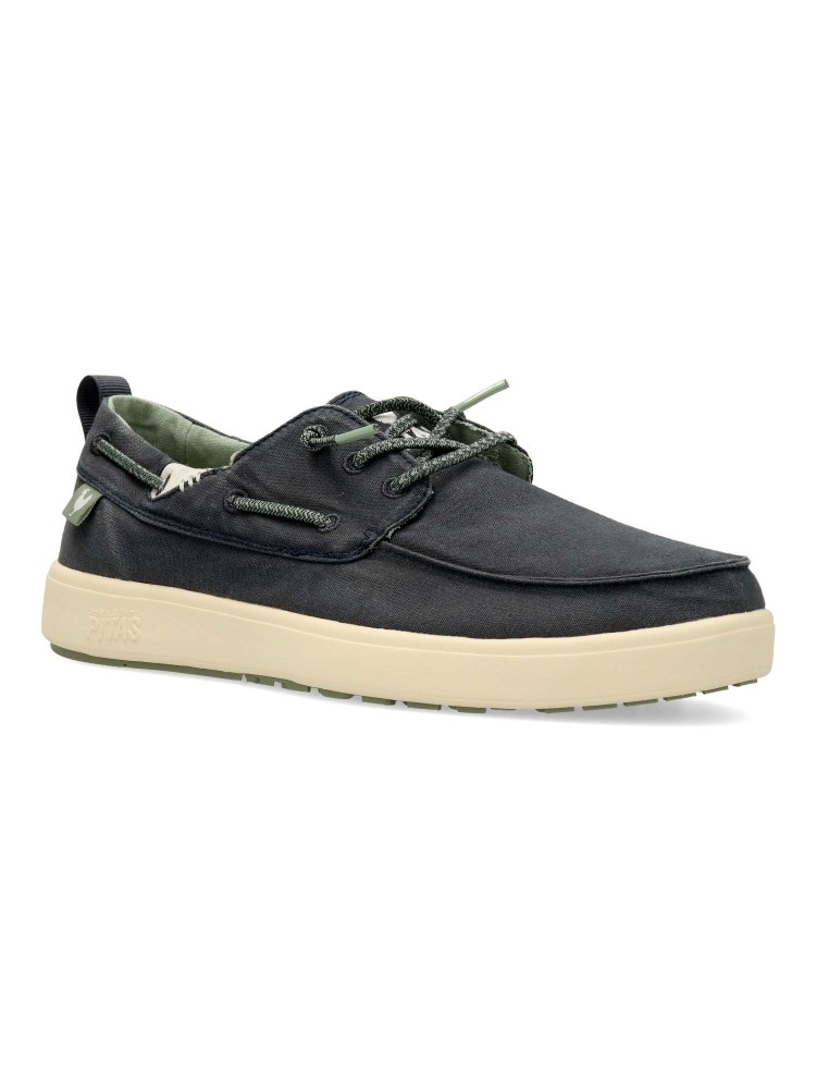 Zapato náutico de lona, sencillo y con personalidad. Naútico de líneas clásicas, muy cómodo y ligero y con un toque informal. Fabricado en algodón lavado, con suela Coast de EVA, flexible, ligera y antideslizante. Plantilla ergonómica forrada en piel.