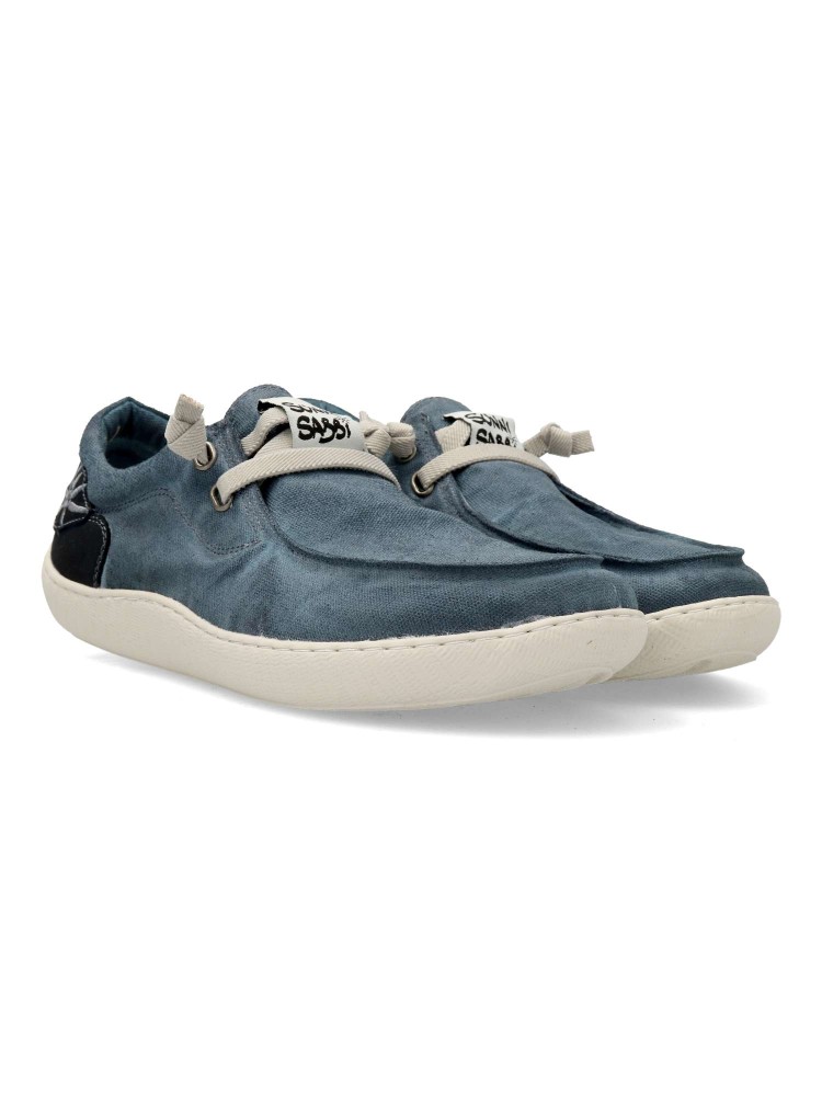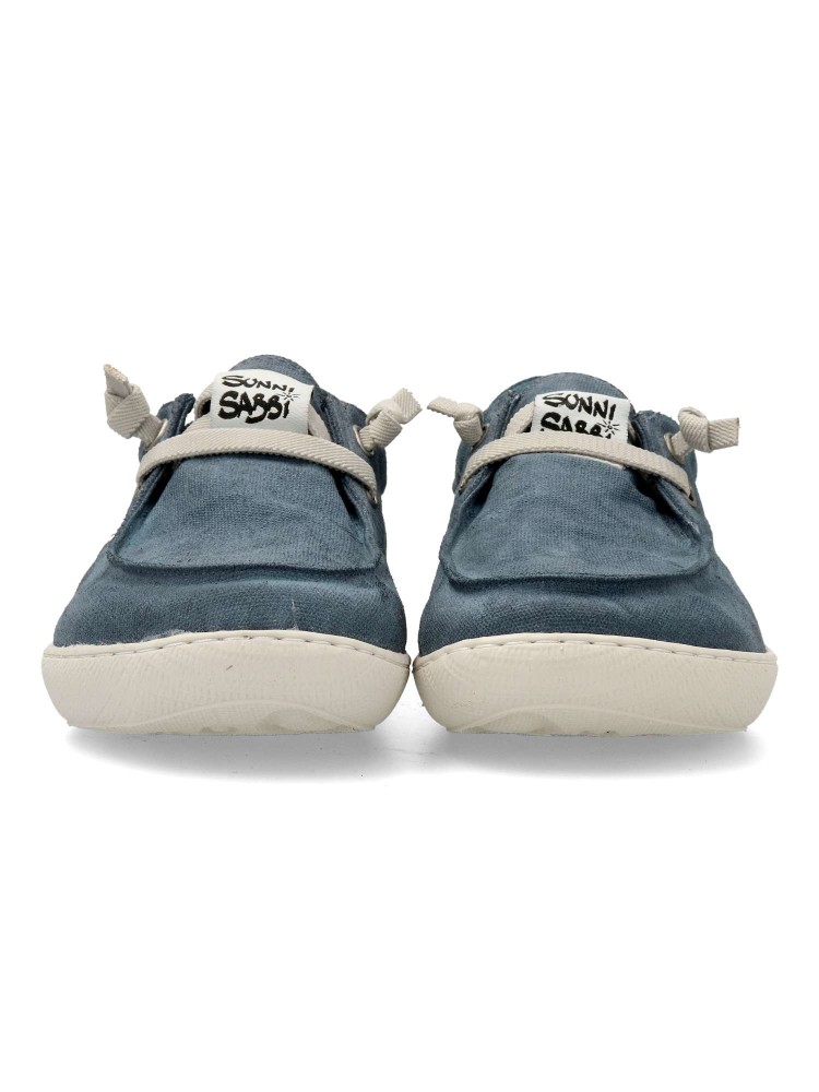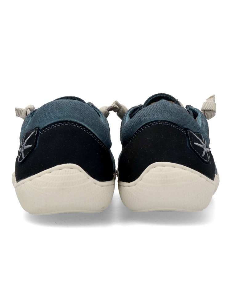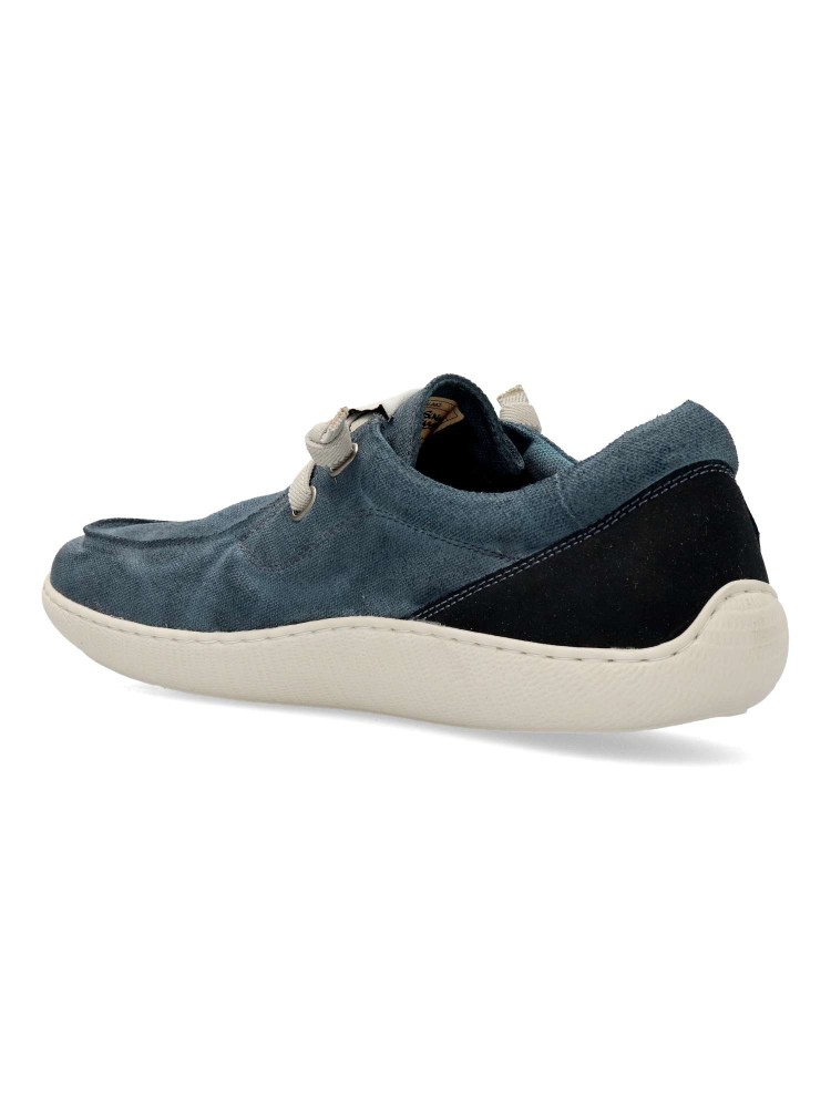 Deportiva estilo náutico hecha en algodón orgánico, elaborada y teñida a mano. Tiene la puntera ancha. Suela totalmente plana, flexible y antideslizante, hecha con caucho natural. Plantilla extraíble hecha con material reciclado. Hecho en España.