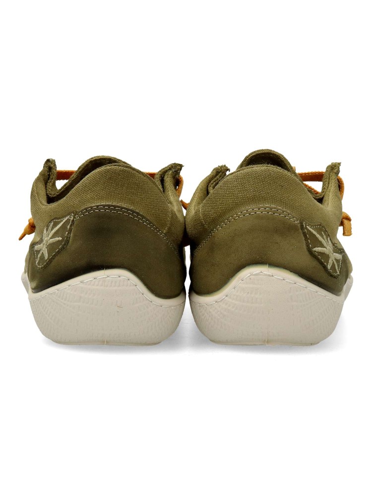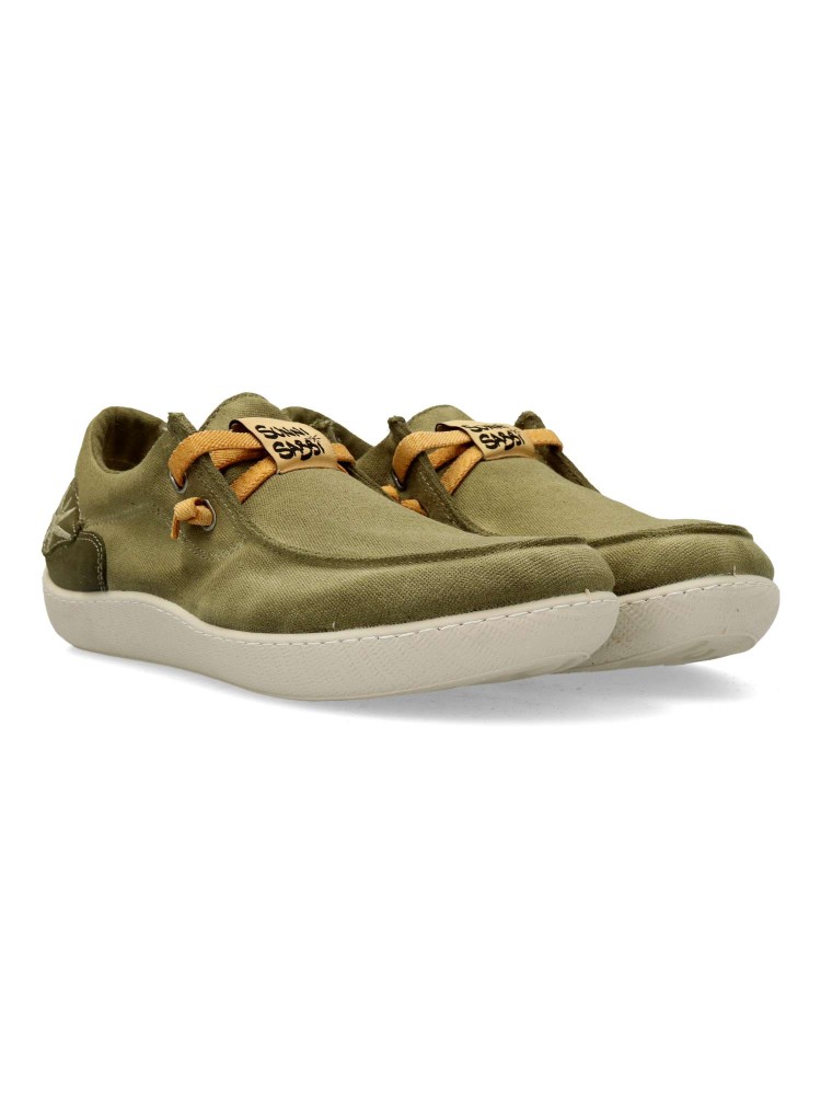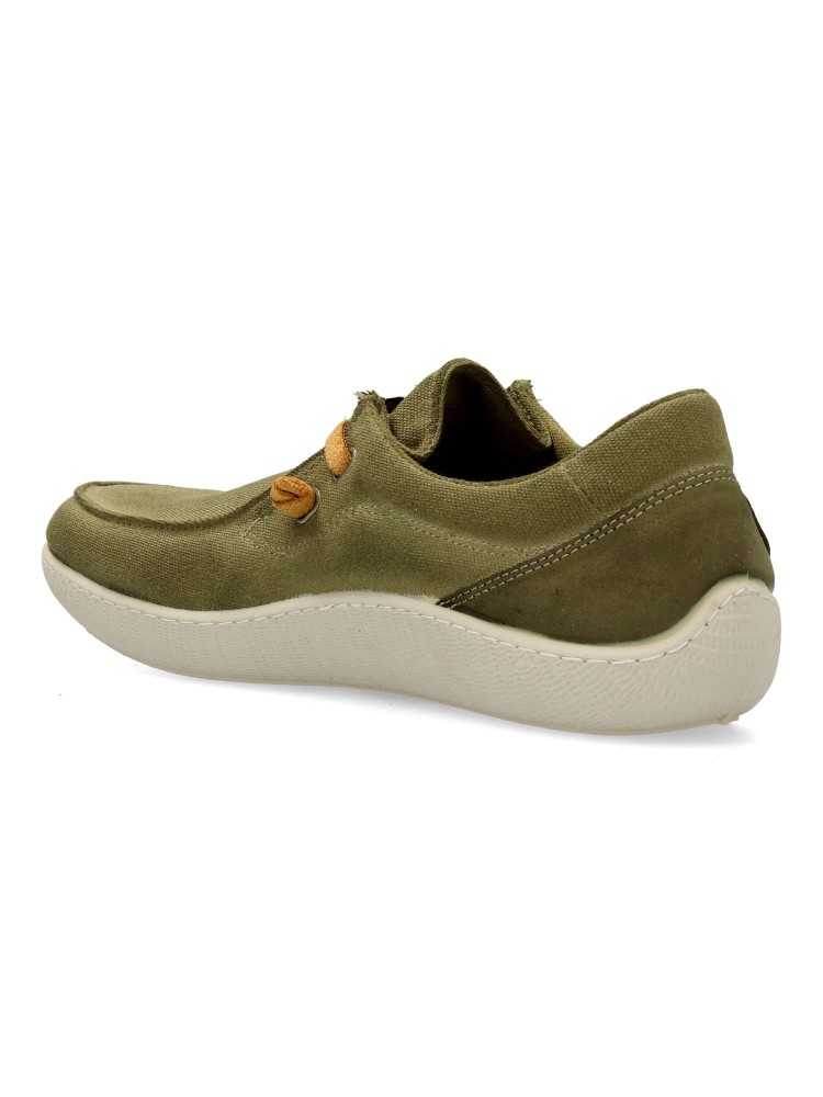 Deportiva estilo náutico hecha en algodón orgánico, elaborada y teñida a mano. Tiene la puntera ancha. Suela totalmente plana, flexible y antideslizante, hecha con caucho natural. Plantilla extraíble hecha con material reciclado. Hecho en España.