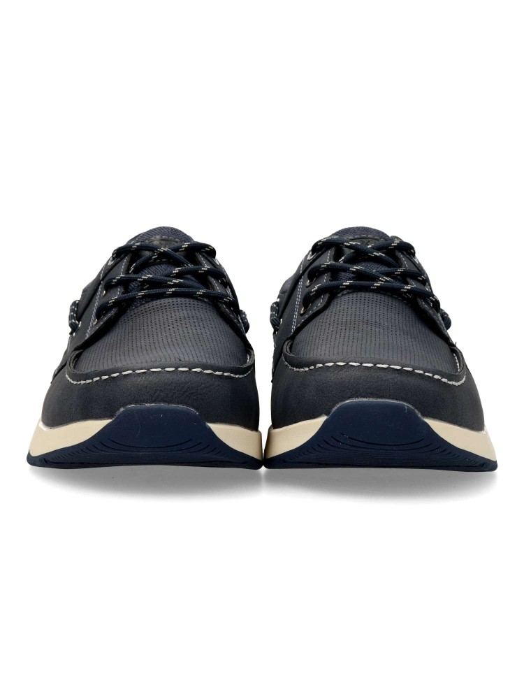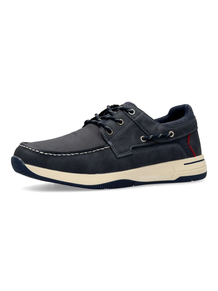 Zapato náutico de hombre, estilo casual. Cierre de cordones. Fabricado en piel sintética, con suela de goma. Plantilla acolchada. Color azul. Zapato confort, ideal tanto para looks informales o outfits más arreglados.