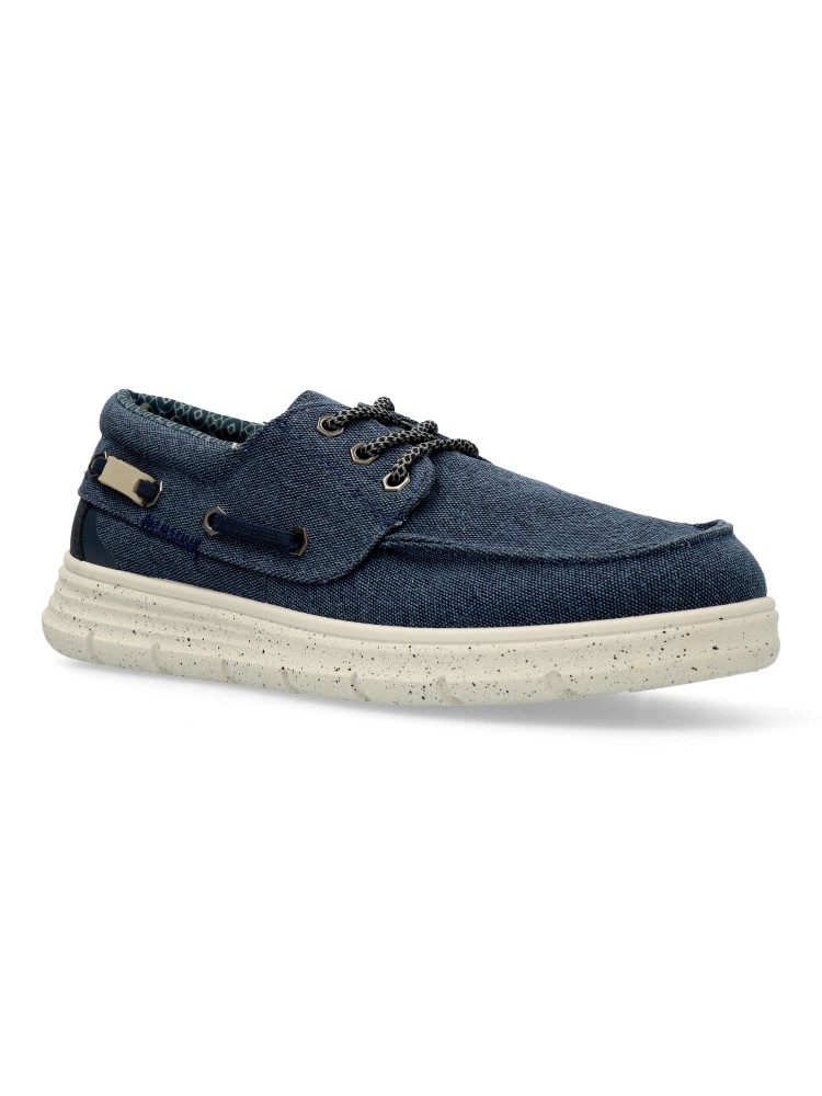 Náutico confort de hombre, estilo casual. Cierre de cordones. Modelo cómodo fabricado en textil, con suela de goma blanca. Plantilla acolchada y extraíble. Color azul. Zapato ligero, flexible y transpirable, ideal para tu día a día.