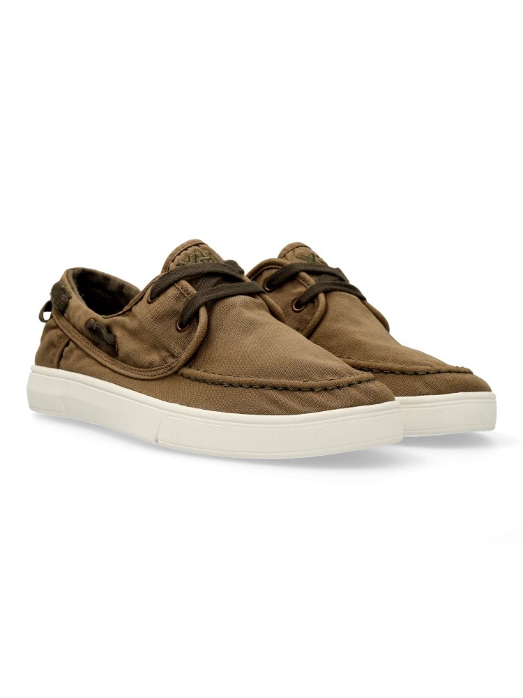 Mocasín de caballero estilo casual, fabricado en textil con acabado estilo lavado que le aporta un aire desenfadado y veraniego. Zapato ligero, transpirable y flexible, que ofrece gran comodidad. Ideal para llevar durante todo el día. Certificado vegano.