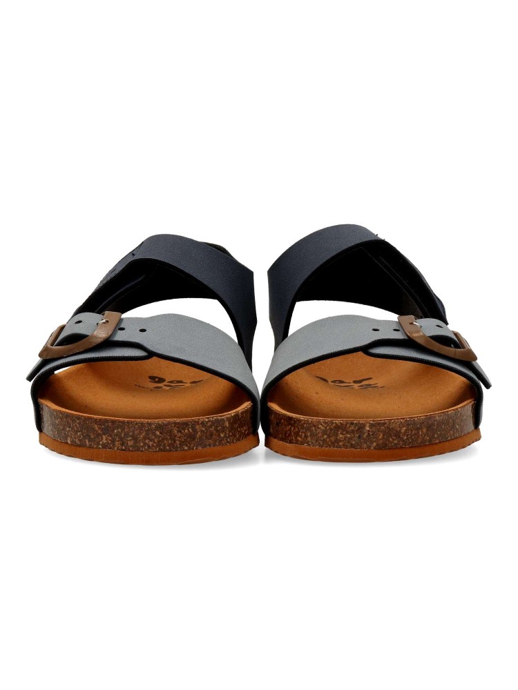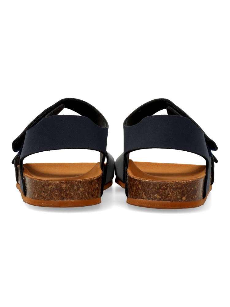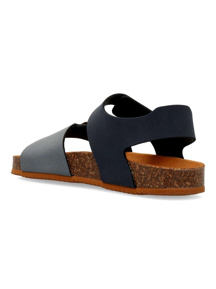 Sandalia cómoda de niño. Modelo tipo bio, fabricada en piel sintética, con suela de goma. Ajuste con hebilla y tira adherente. Modelo transpirable y flexible con plantilla de microfibras antibacterias. Calzado respetuoso con el desarrollo natural del pie.