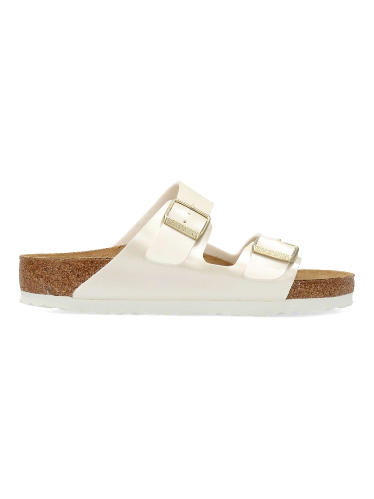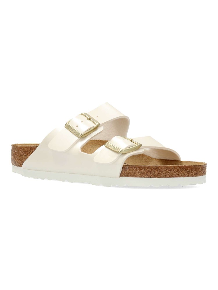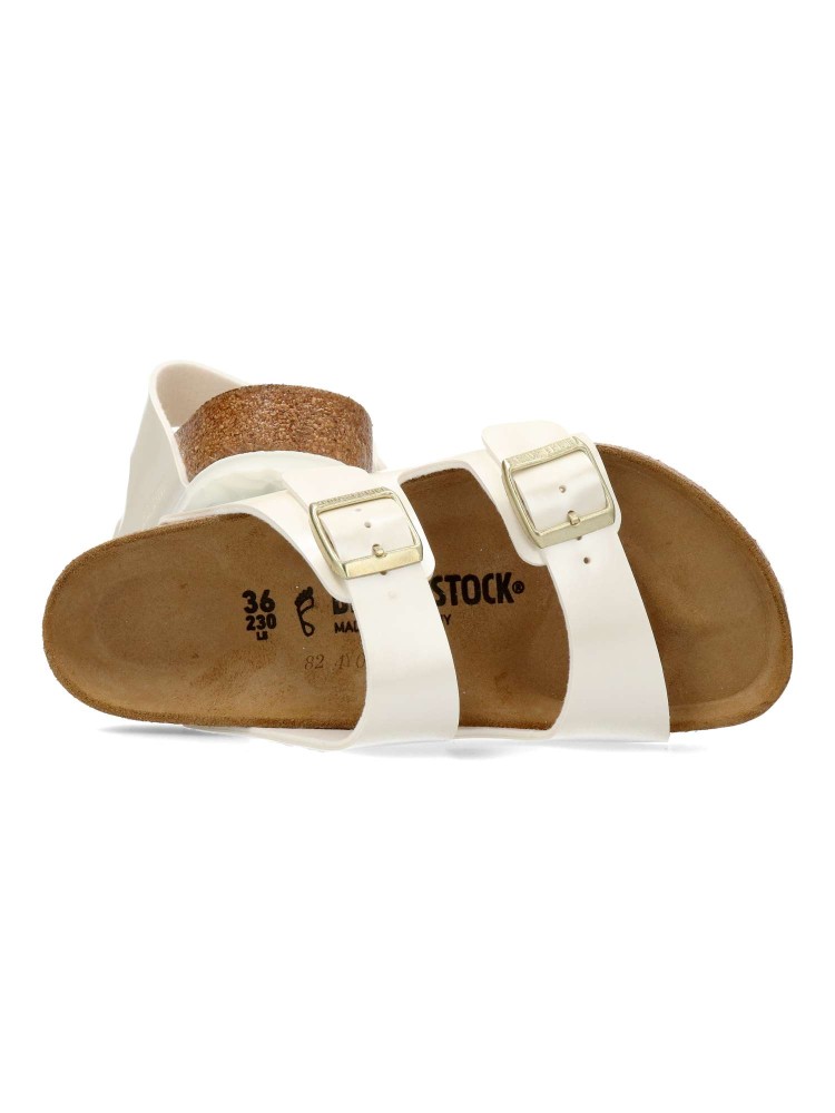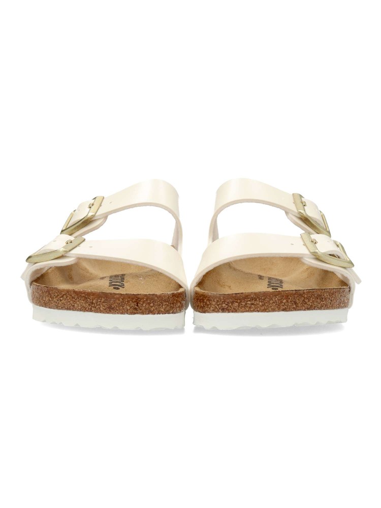 Sandalia bio con plantilla blanda original BIRKENSTOCK; anatómica corcho-látex. Cierre de dos hebillas al empeine. Material superior: Birko-Flor®. Planta de piel con suela goma EVA. Color perla. Made in Germany.
