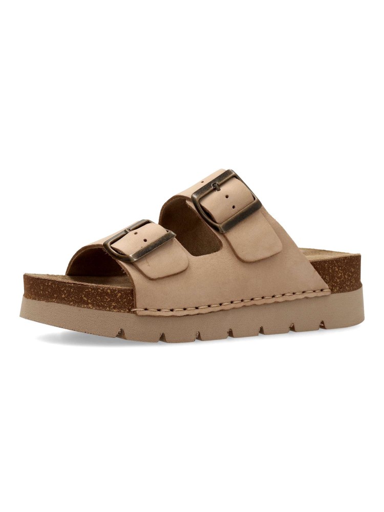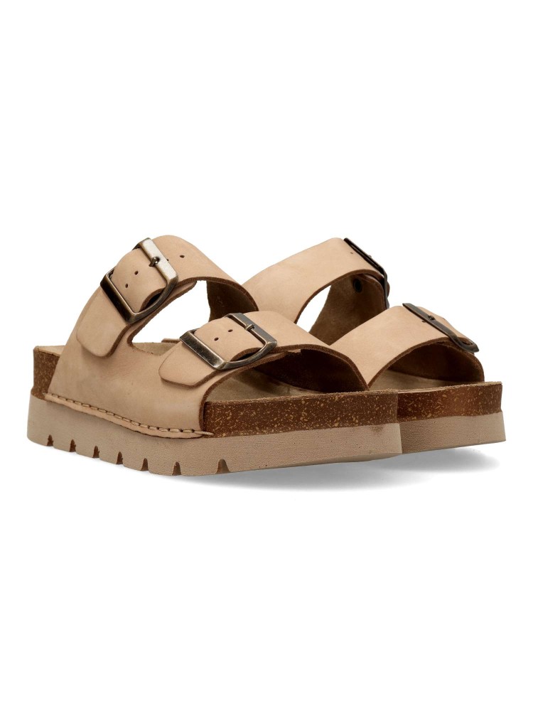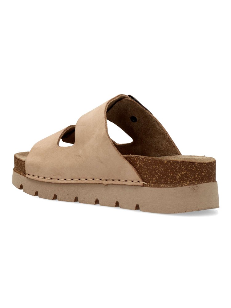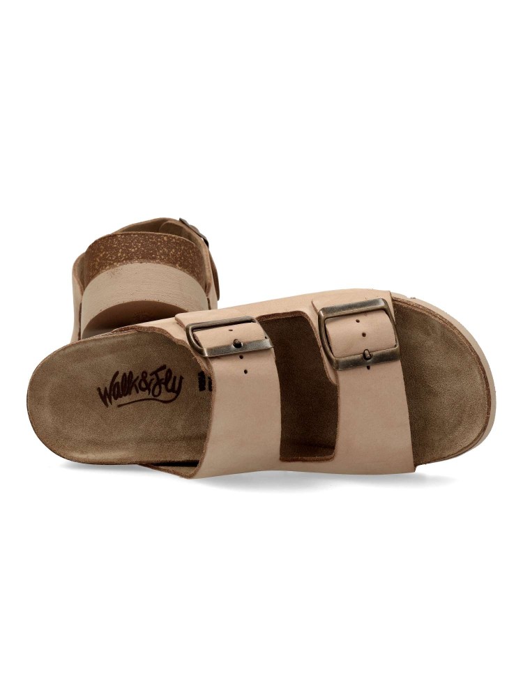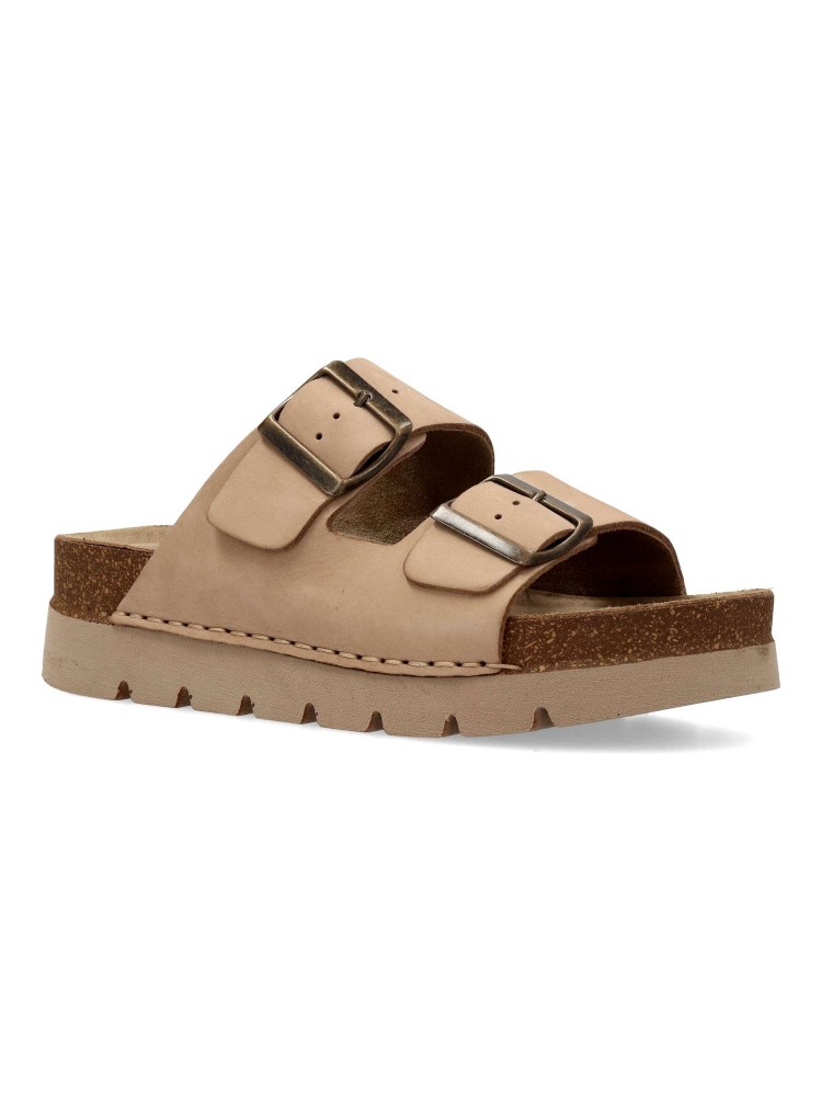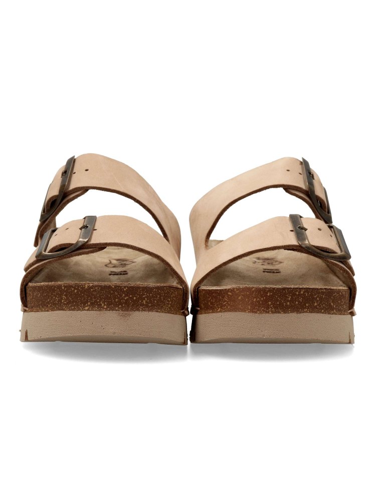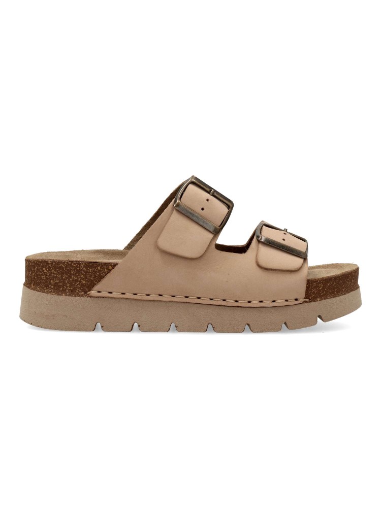 Sandalia cómoda de mujer, fabricada a mano en piel de primera calidad, con suela de goma EVA. Modelo tipo bio con hebillas ajustables. Planta de piel acolchada. Color piedra. Sandalia para verano que ofrece flexibilidad, comodidad y frescura al caminar.