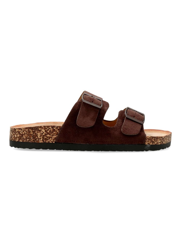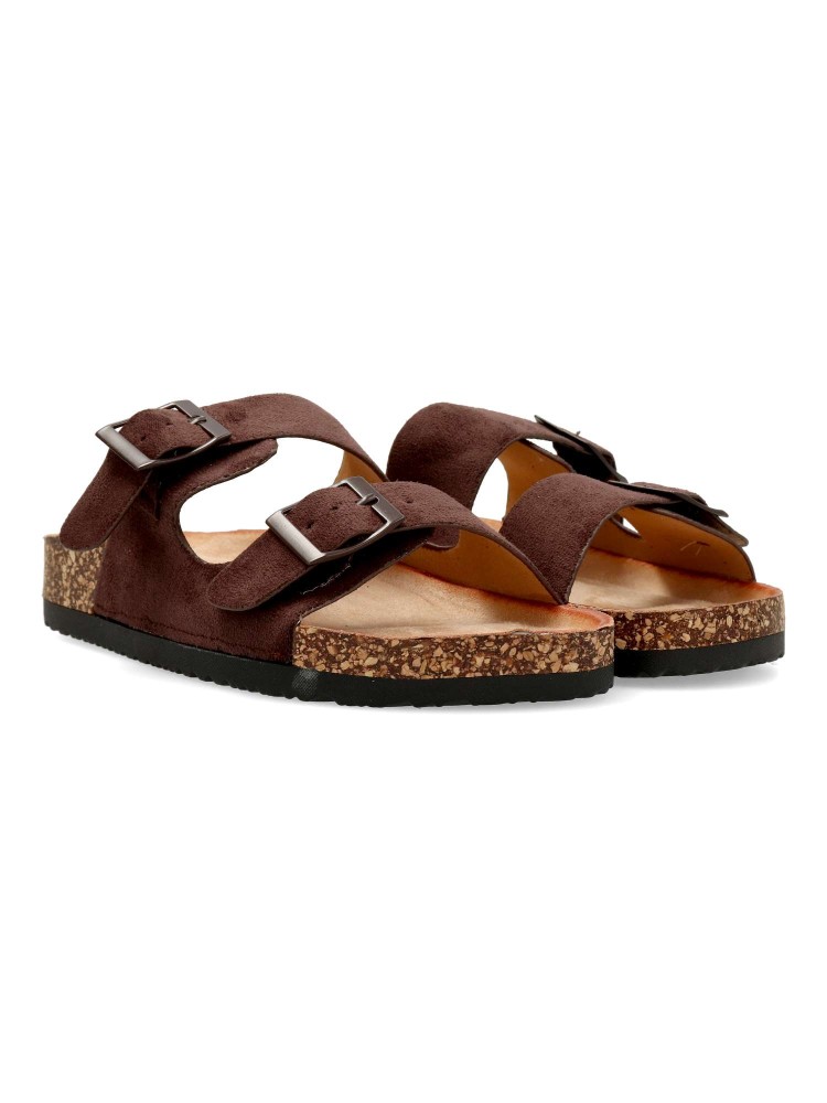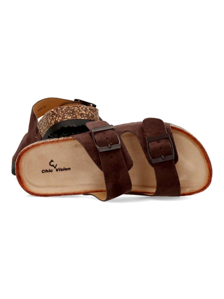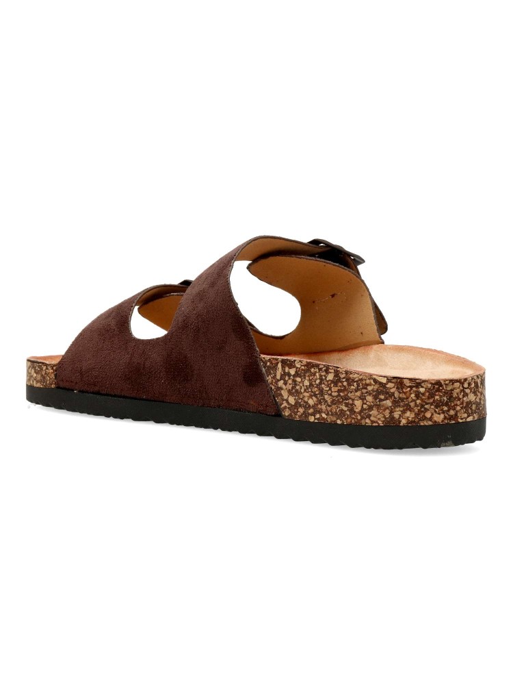 Sandalia de mujer tipo bio. Pala ajustable con doble hebilla. Modelo cómodo, fabricado en material sintético con suela de goma flexible. Planta anatómica acolchada. Color marrón. Modelo fresco y confortable que no te puede faltar con tu outfit de verano.
