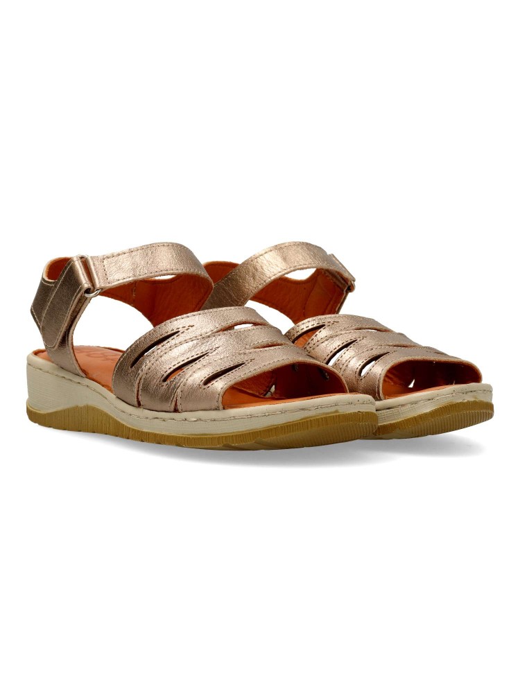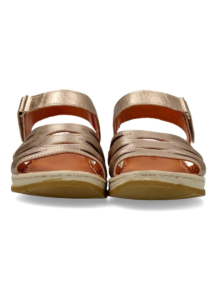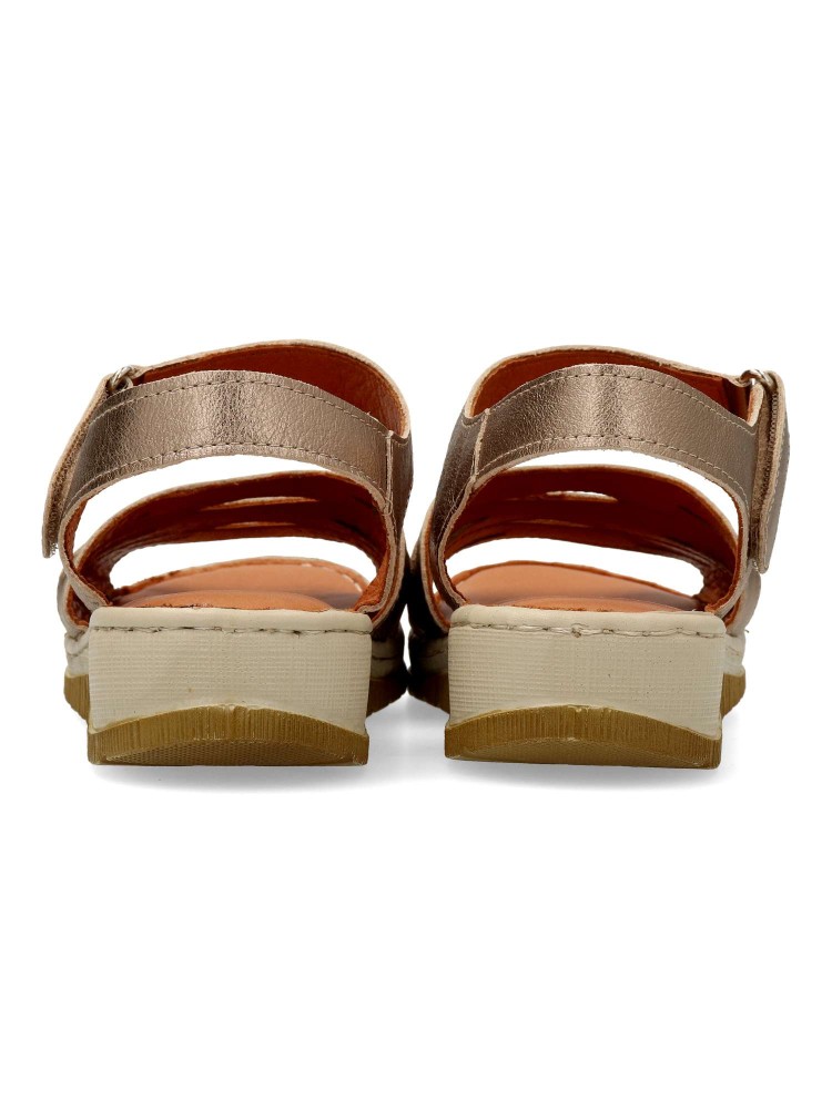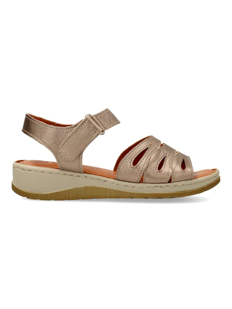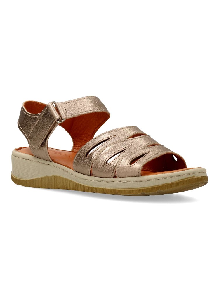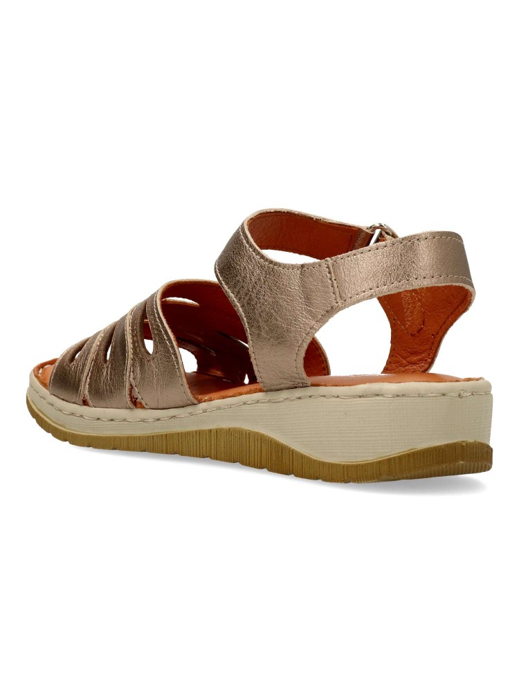Sandalia de mujer con cierre adherente. Modelo cómodo, fabricado en piel natural metalizada, con suela de goma ligera y flexible. Planta acolchada. Color cobalto. Altura cuña 3,5 cm. Diseño elegante y confort para andar sin limites.