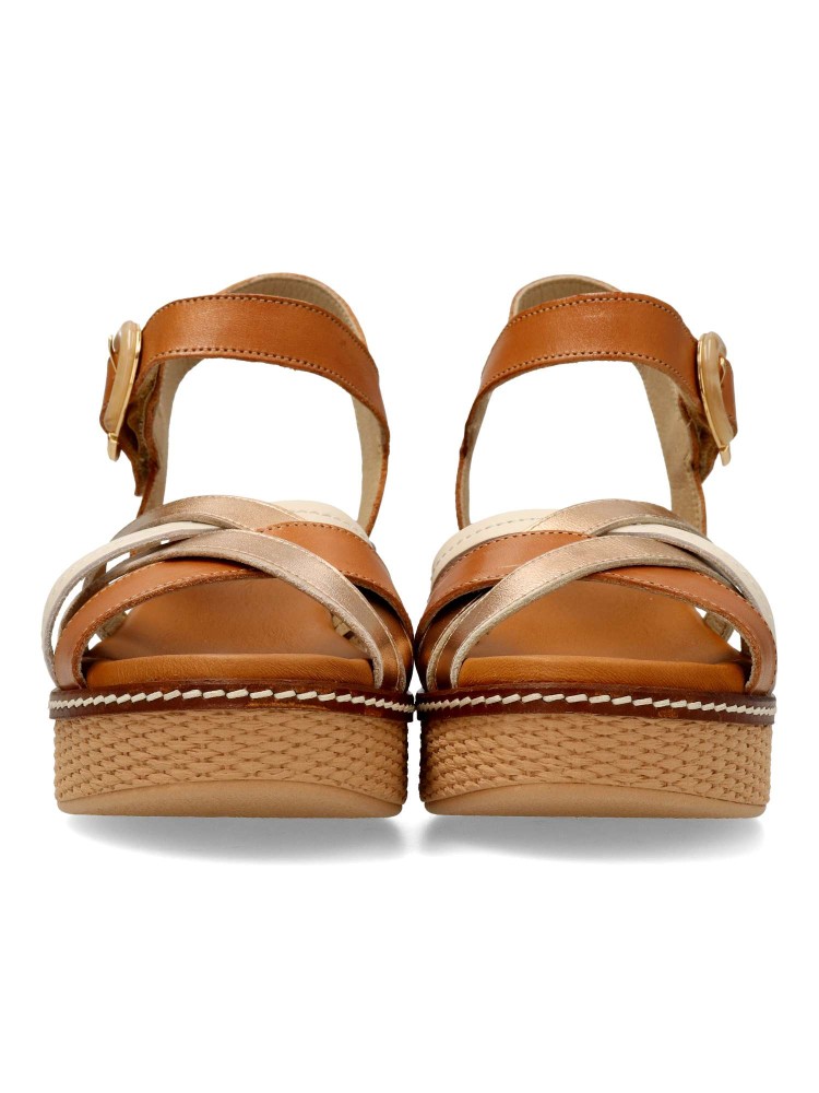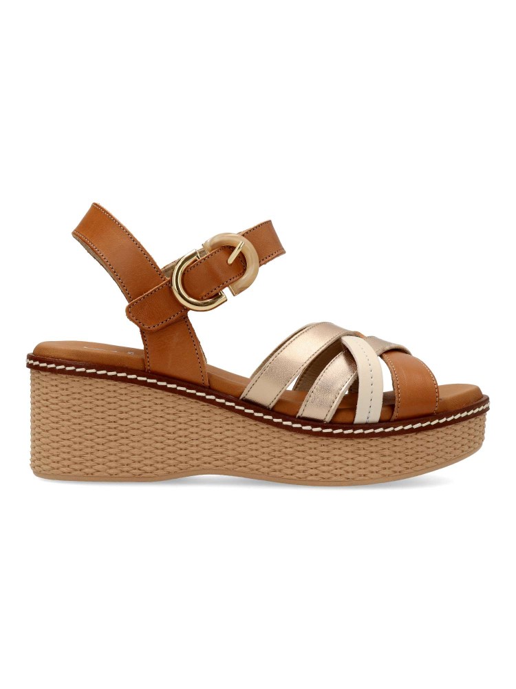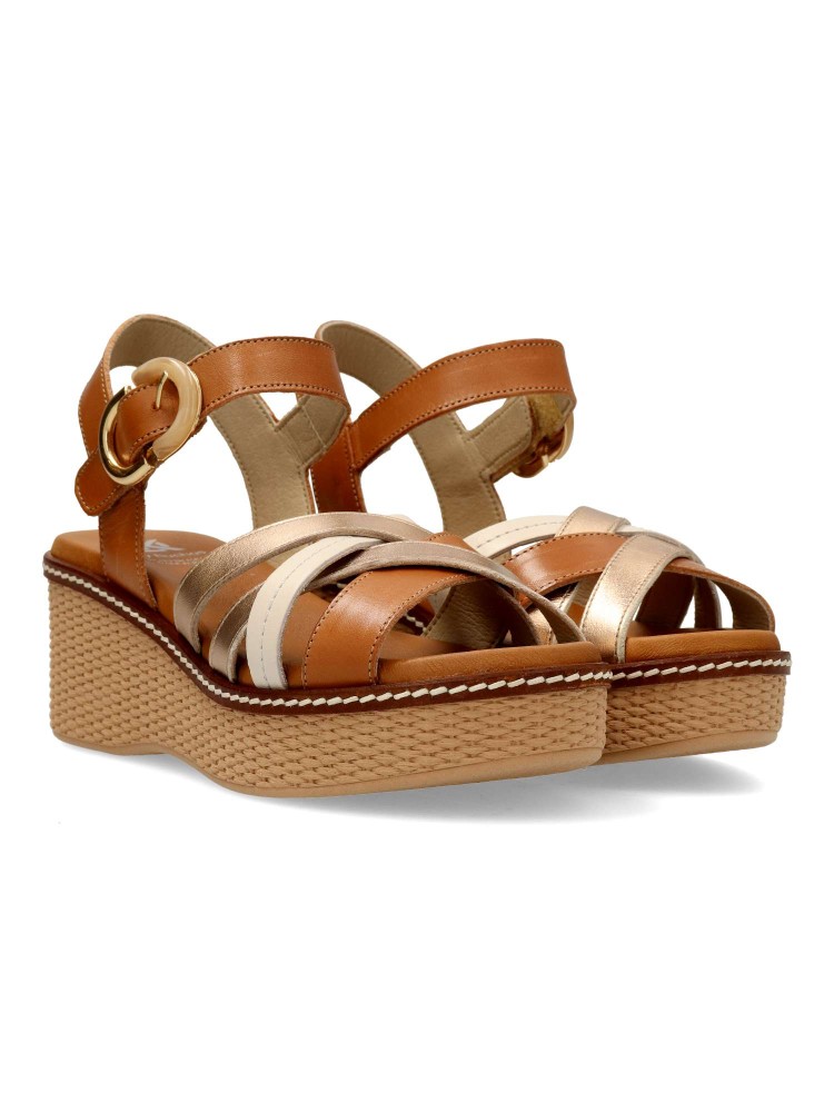 Sandalia de mujer con cierre de hebilla. Modelo casual cómodo, fabricado en piel de primera calidad. Suela de goma efecto rafia. Planta acolchada. Combínalas con infinidad de looks y conjuntos de estilos muy diversos. Hecho en España.
