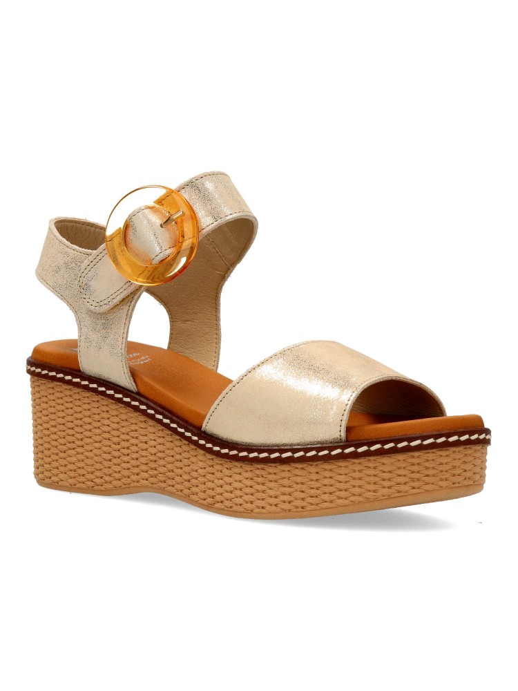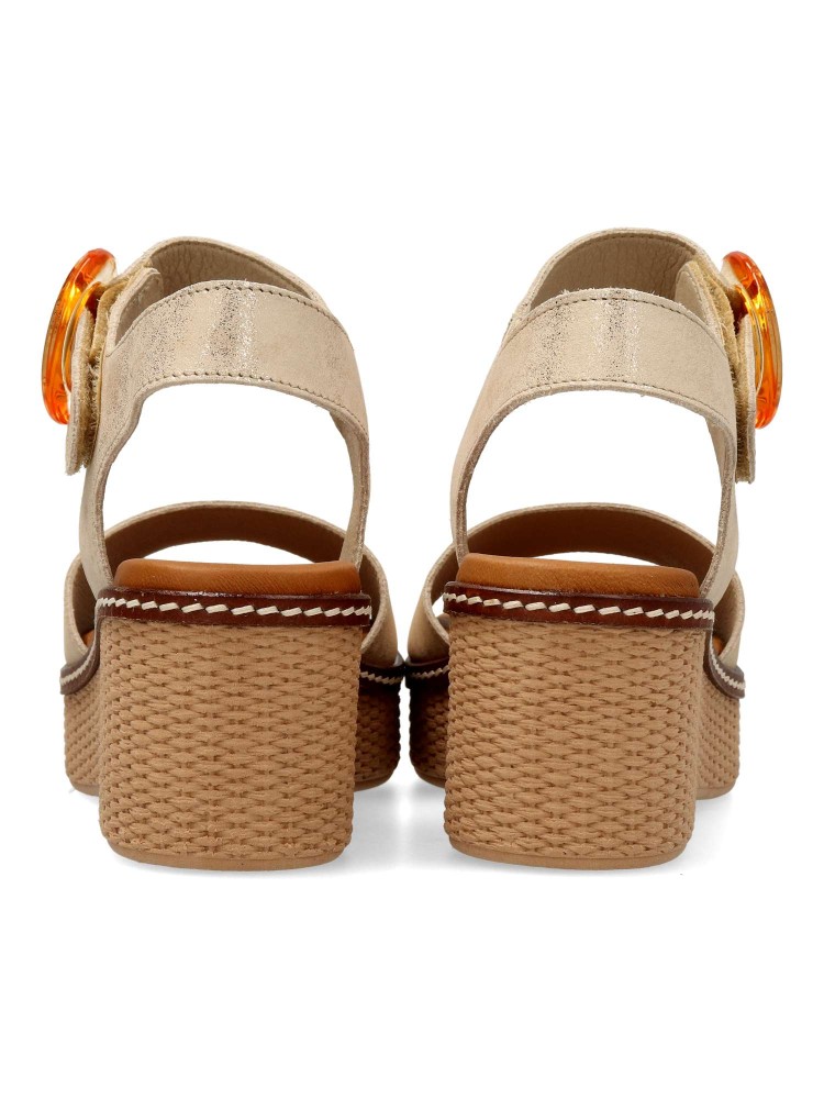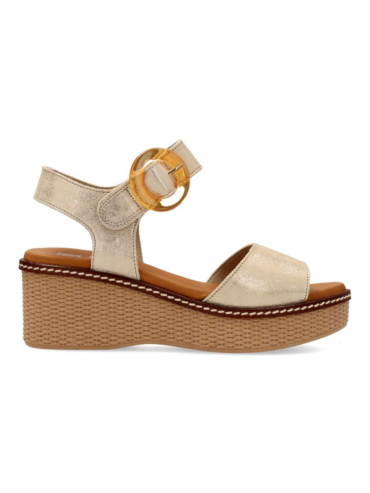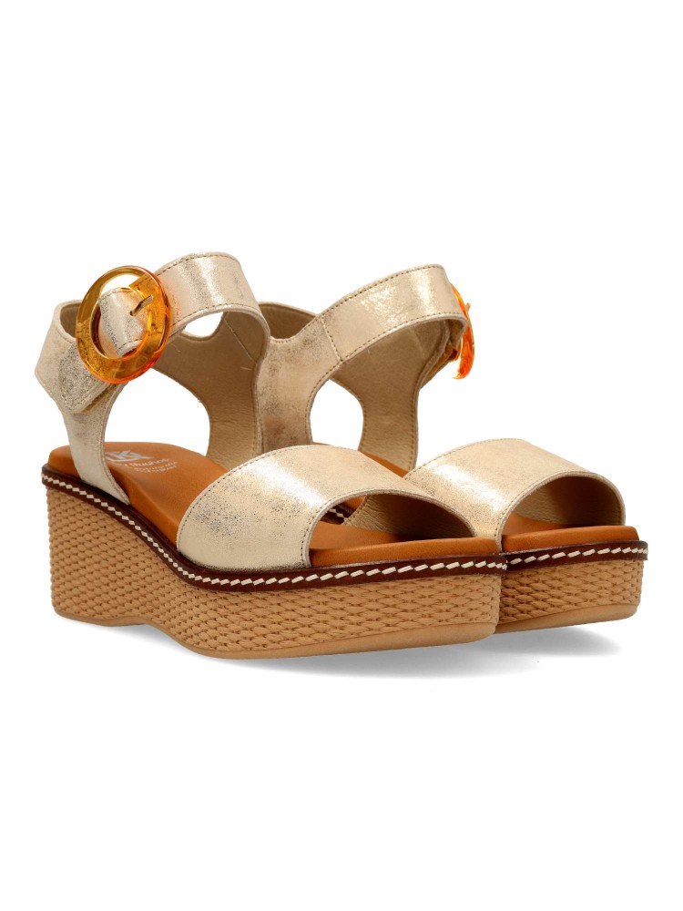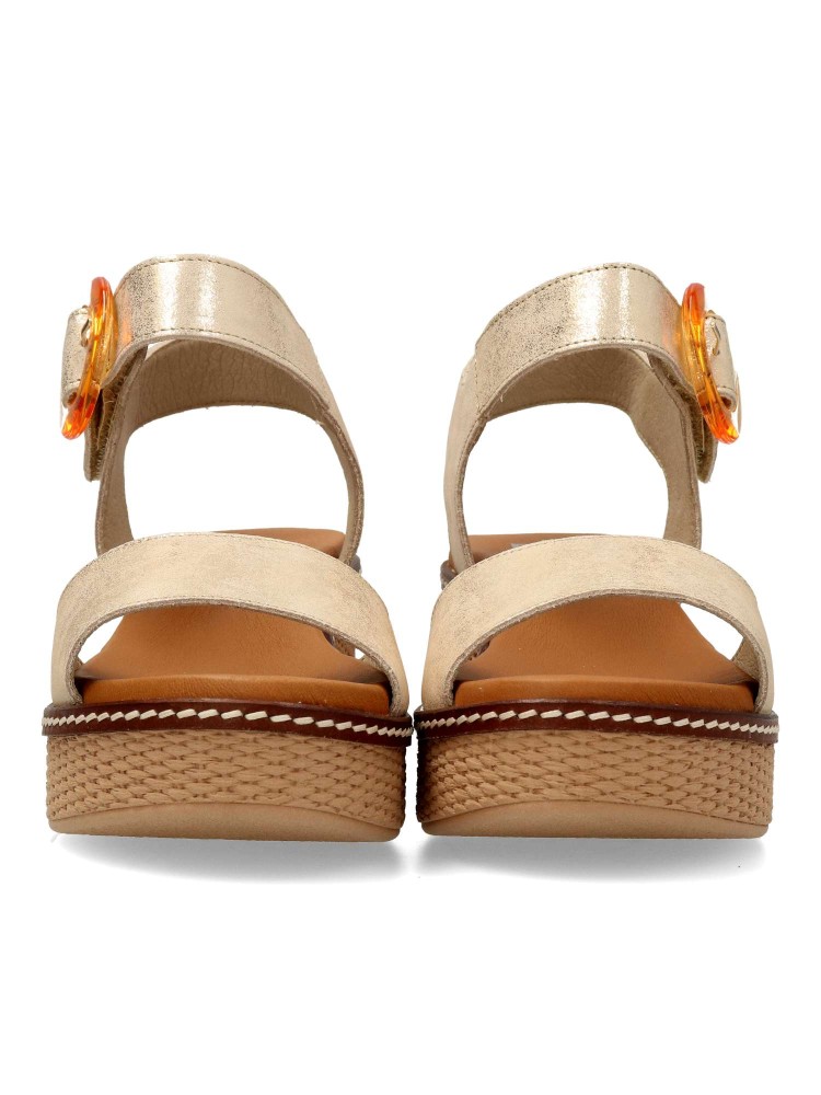 Sandalia de mujer con cierre de hebilla. Modelo casual cómodo, fabricado en piel de primera calidad. Suela de goma efecto rafia. Planta acolchada. Combínalas con infinidad de looks y conjuntos de estilos muy diversos. Hecho en España.