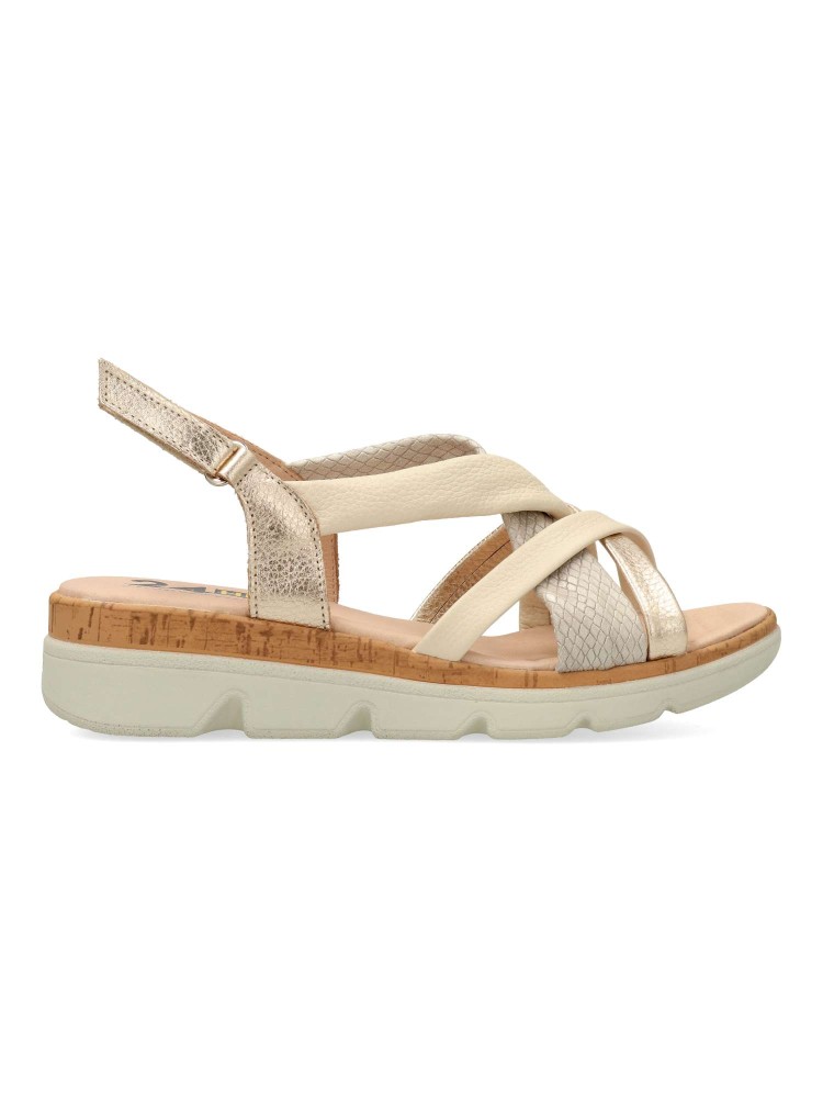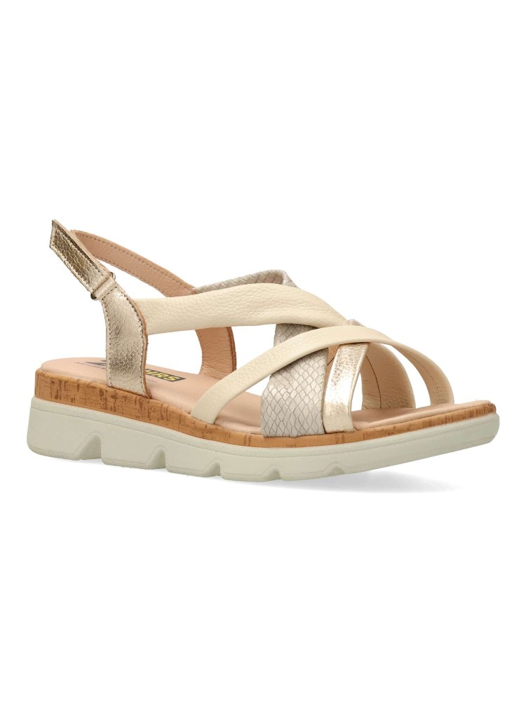 Sandalia cómoda de mujer, con cierre adherente. Fabricado en piel alta selección, con suela de goma ligera y flexible. Planta acolchada. Altura cuña 4 cm. Tecnología: The Lightest. Un modelo casual, urbano y perfecto para elegir a diario.