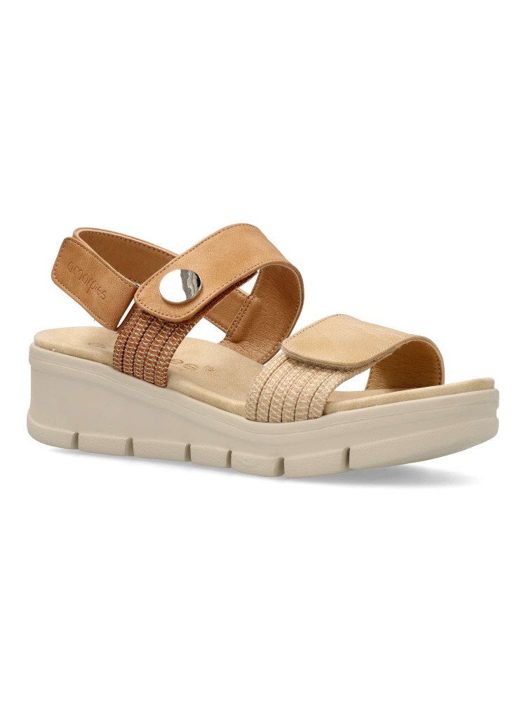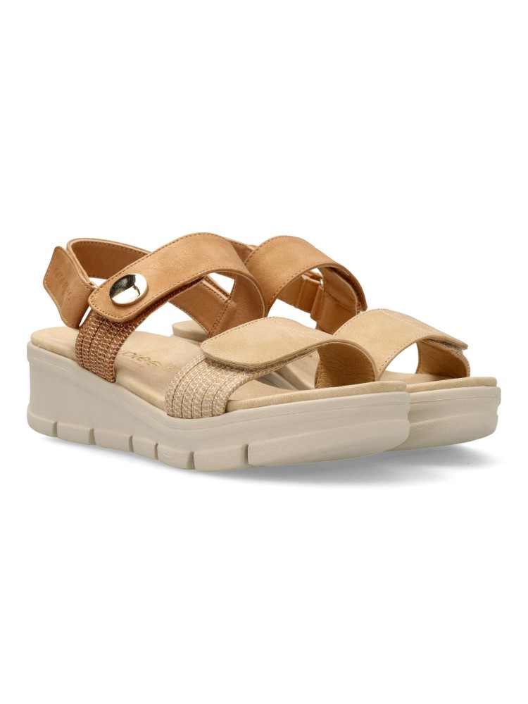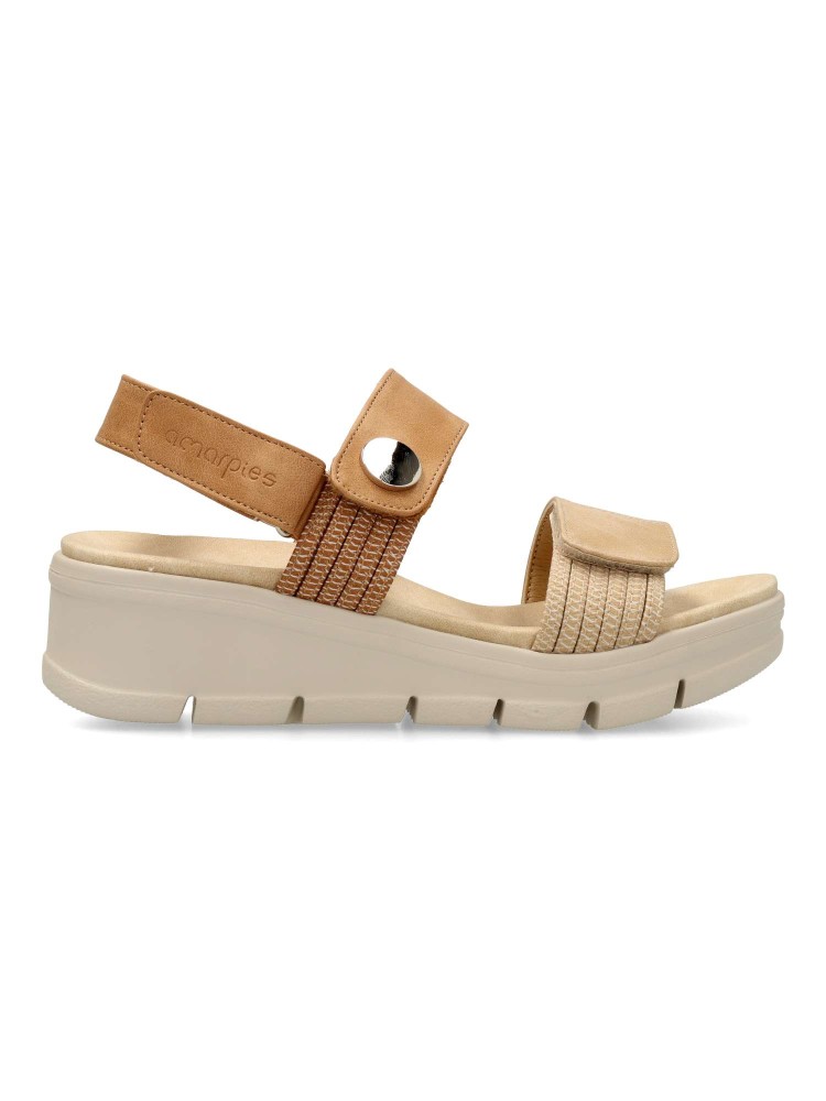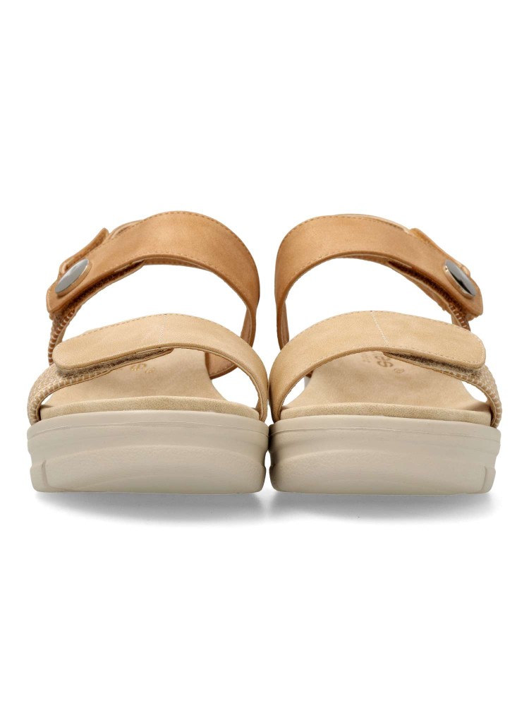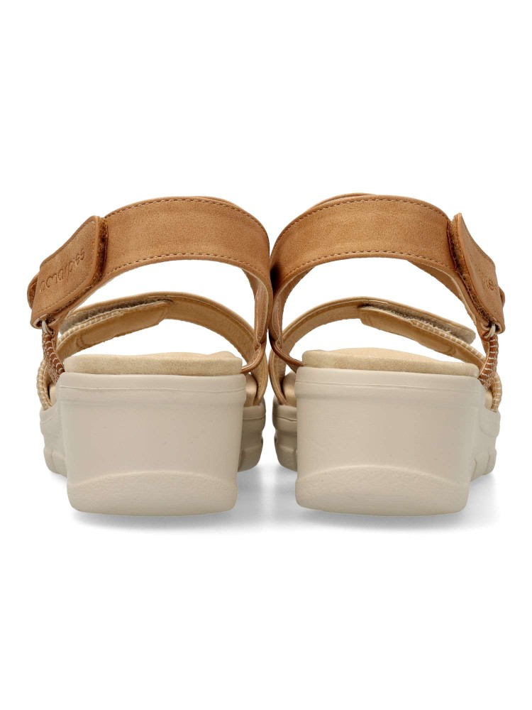 Sandalia para mujer, estilo casual. Cierre de tiras adherentes. Modelo cómodo, fabricado en piel sintética y tiras elásticas. Suela de goma ligera y flexible. Planta acolchada. Original y versátil, para dar el máximo confort a tus paseos de verano.