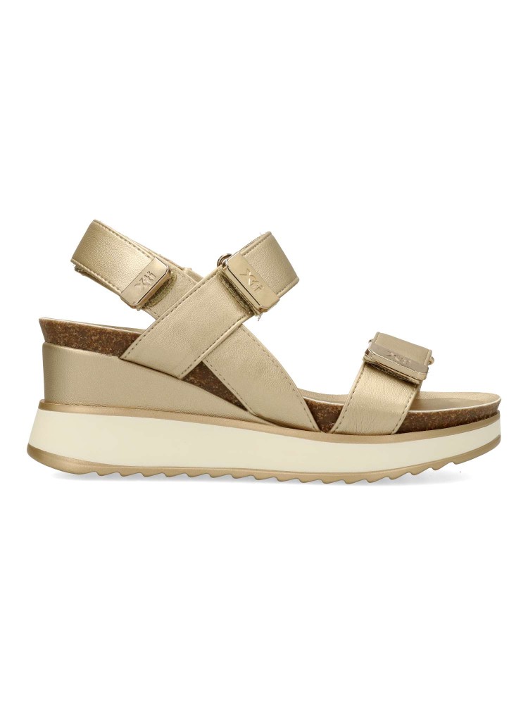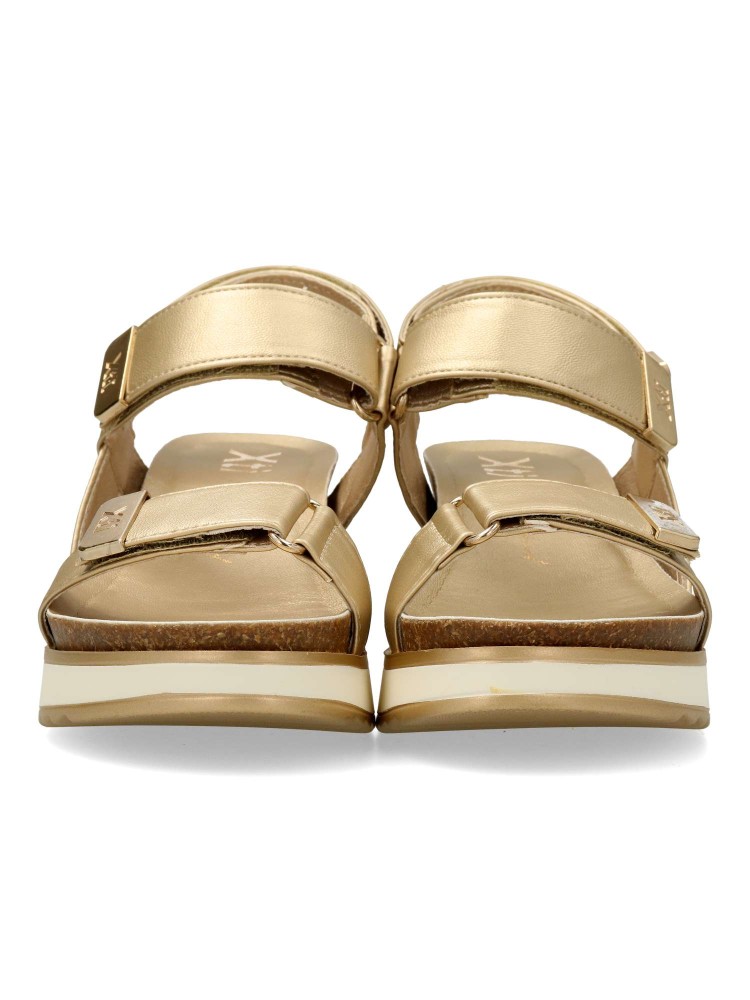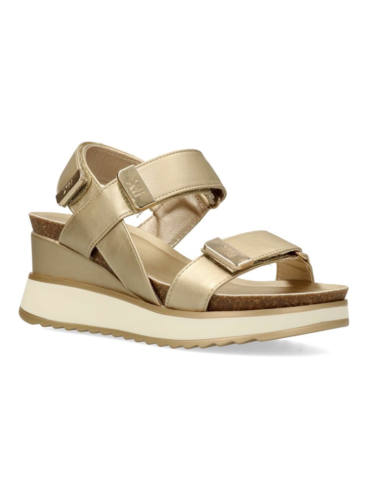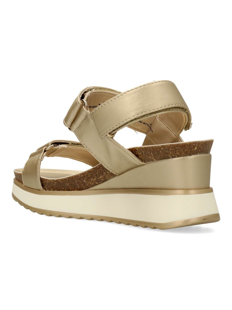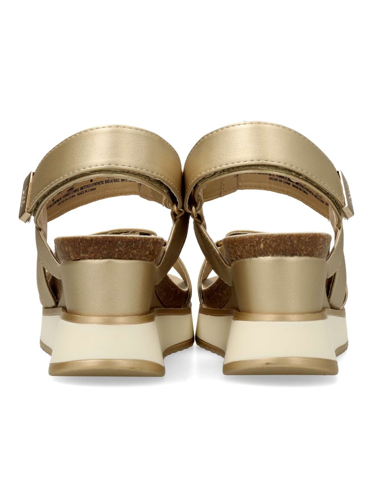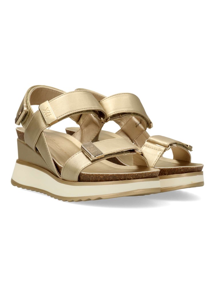 Sandalia deportiva de mujer, estilo casual. Cierre adherente ajustable. Fabricada en material que imita la piel con efecto metalizado. Planta acolchada. Suela antideslizante. Cuña de 7 cm. Será uno de tus esenciales de esta temporada. Certificado vegano.
