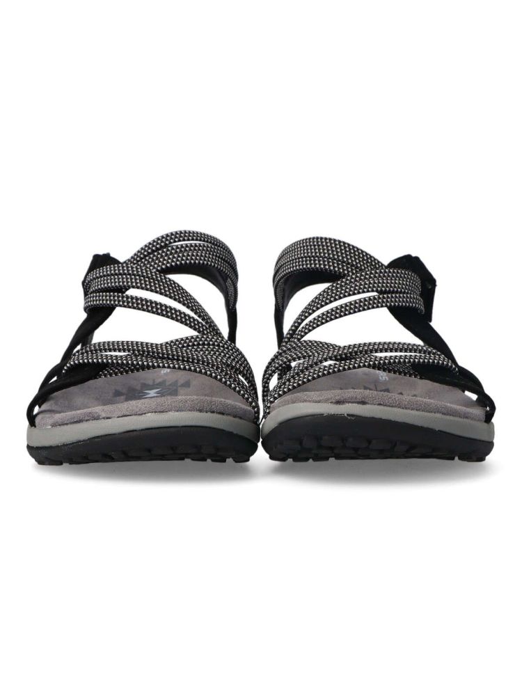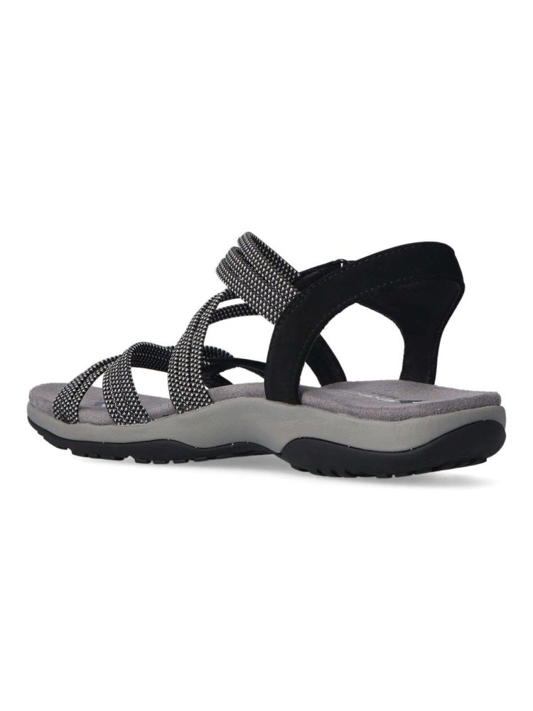 Sandalia deportiva Reggae Slim - Summer of Fun. Parte superior con tiras sintéticas y elásticas. Correa ajustable en el tobillo con cierre de velcro. Plantilla Memory Foam. Tecnología Stretch Fit, que ofrece un ajuste perfecto. Color negro. 100% Vegano.