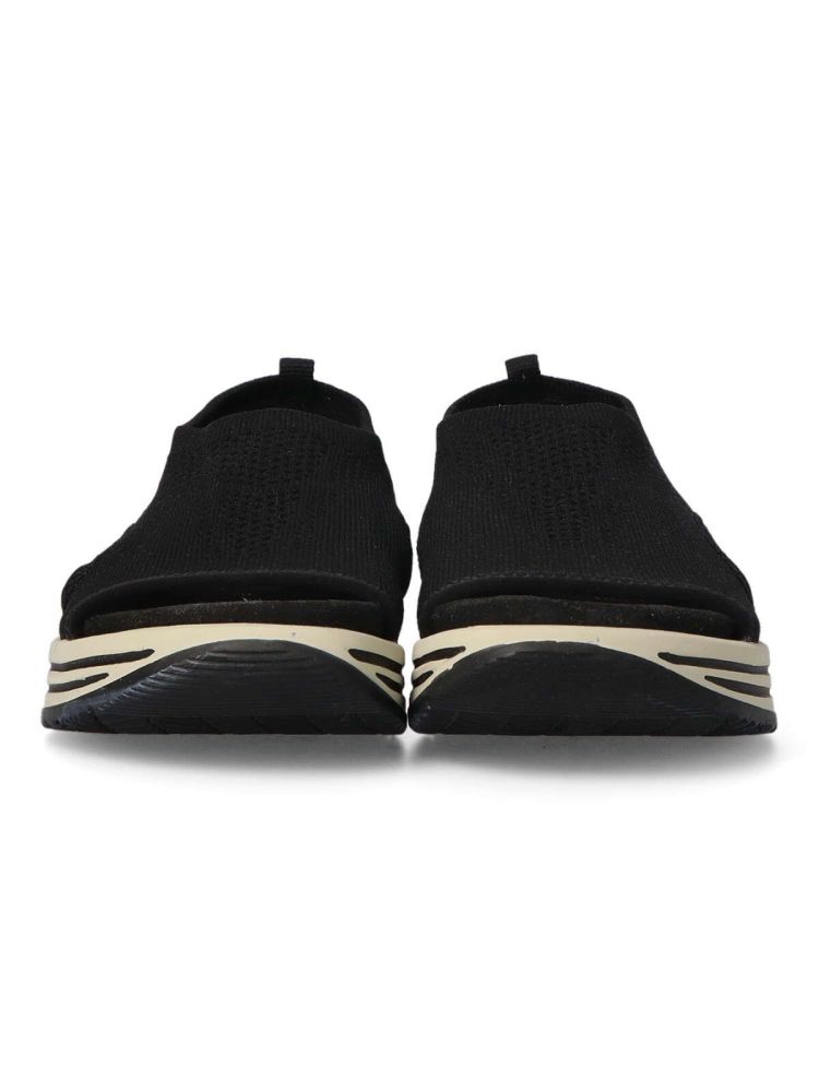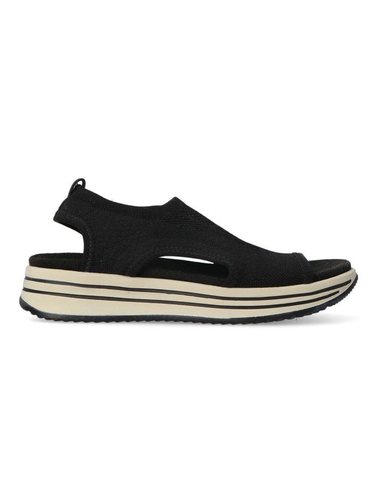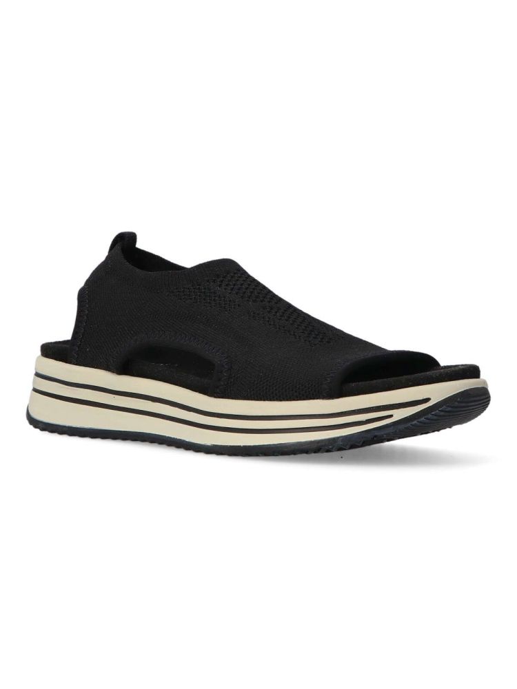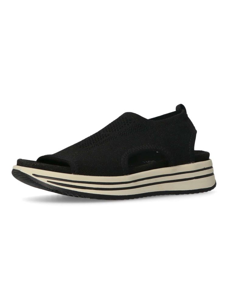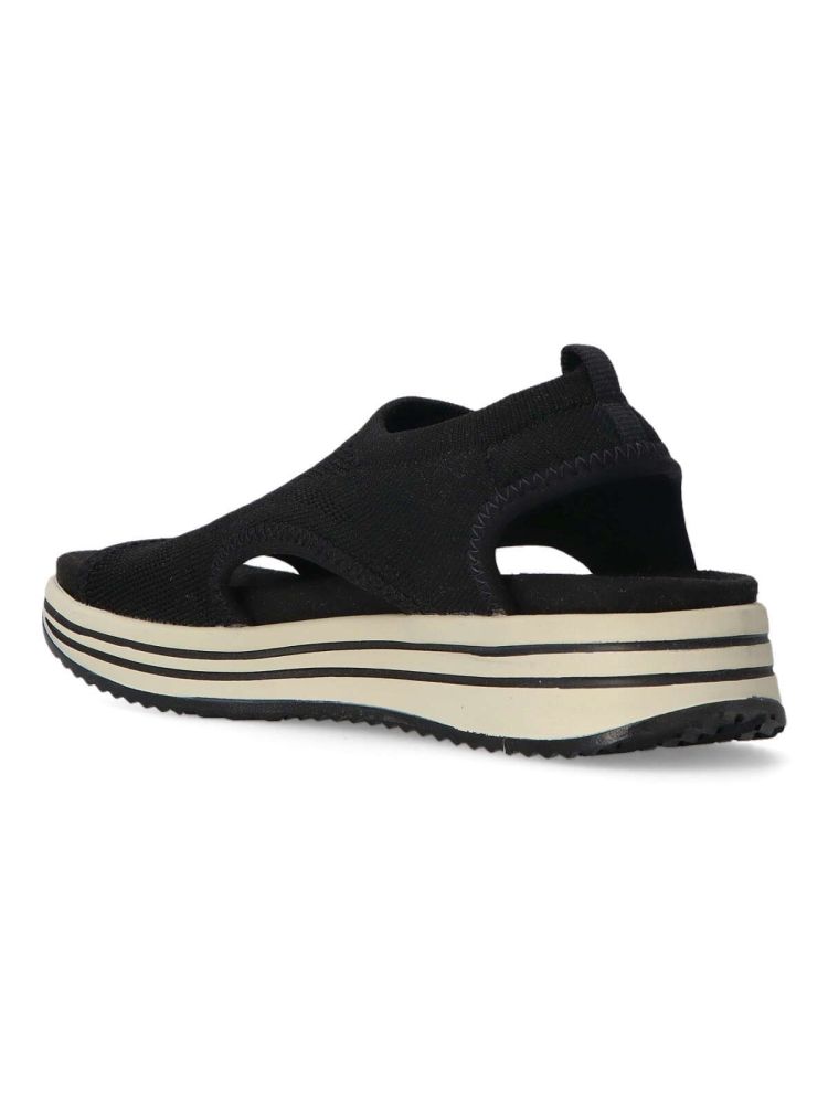 Sandalia calcetín cómoda de mujer, sin cierre. Fabricado en textil elástico con suela de goma. Color negro. Modelo cómodo, ligero, con máxima flexibilidad y absorción de impactos. Planta acolchada y extraible. Altura 4 cm. Remonte.