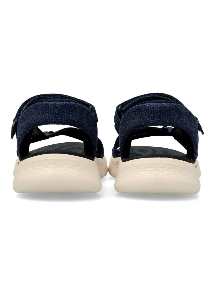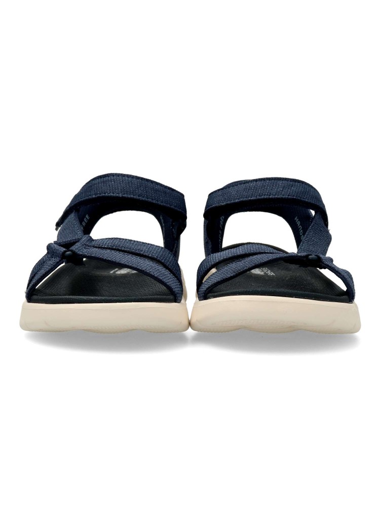 Diseñadas con nuestro sistema Heel Pillow™, estas sandalias deportivas de tiras, con una parte superior tejida con correa ajustable, una plantilla moldeada Goga Mat®, amortiguación ligera ULTRA GO® y talón Skechers Slip-ins® para calzarte sin manos.