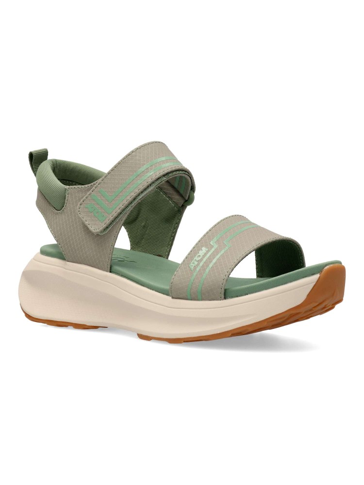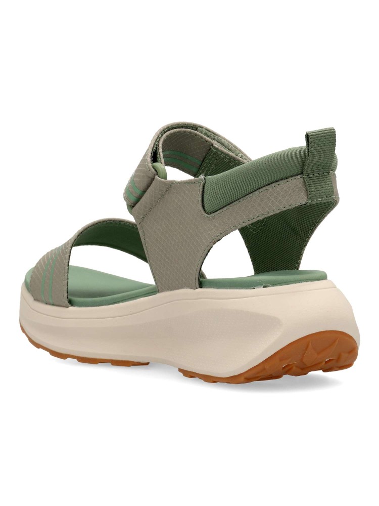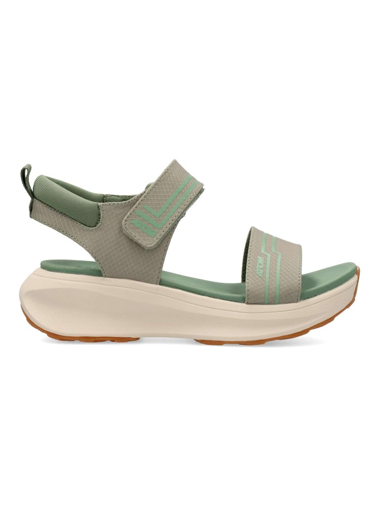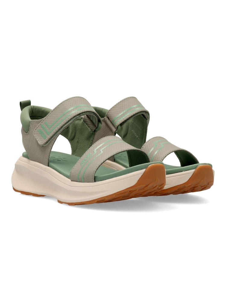 La sandalia deportiva Fusión, esta dotada de diseño y comodidad por excelencia. Cierre adherente. Su ligera y ergonómica suela junto con la plantilla de microfibra convierten a este modelo en una sandalia versatil y práctica para la temporada. Color kaki.