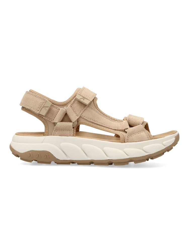 Sandalia deportiva de mujer, estilo casual. Ajuste adherente. Modelo cómodo, fabricado en piel de primera calidad, con suela gruesa de goma. Disponible en color piedra. Máximo confort para tus paseos de verano. XL Extralight.