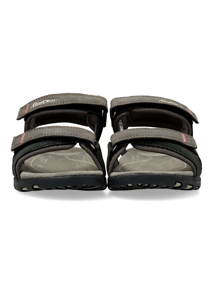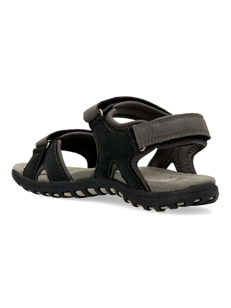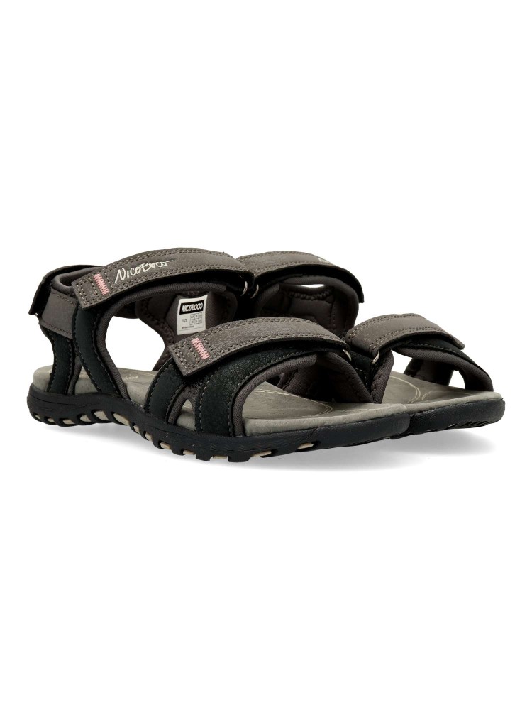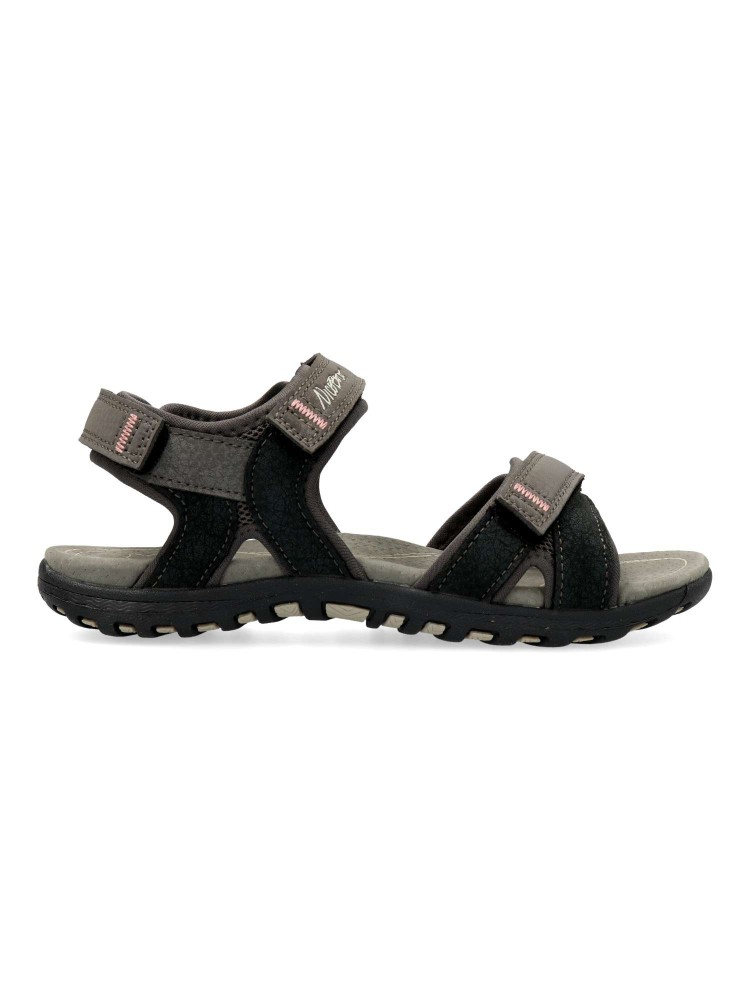 Sandalia deportiva de mujer, estilo casual. Cierre adherente. Californiana ideal para dar tus paseos por la playa. Color negro-gris. Fabricada en marterial sintético, con suela de goma flexible y ligera. Planta de piel acolchada.