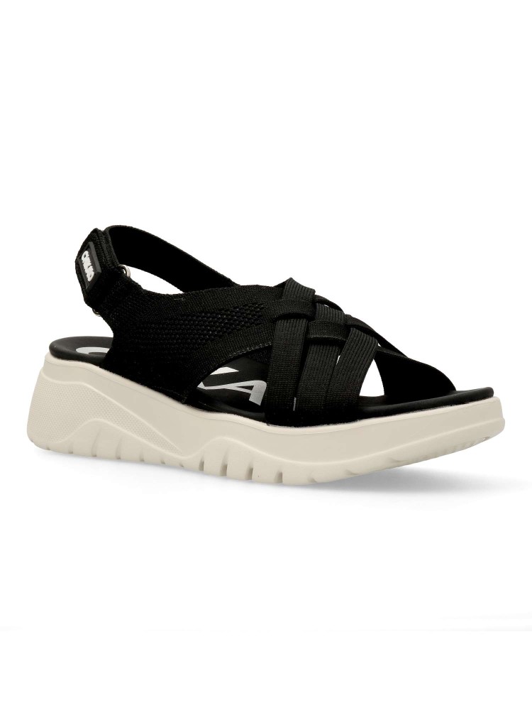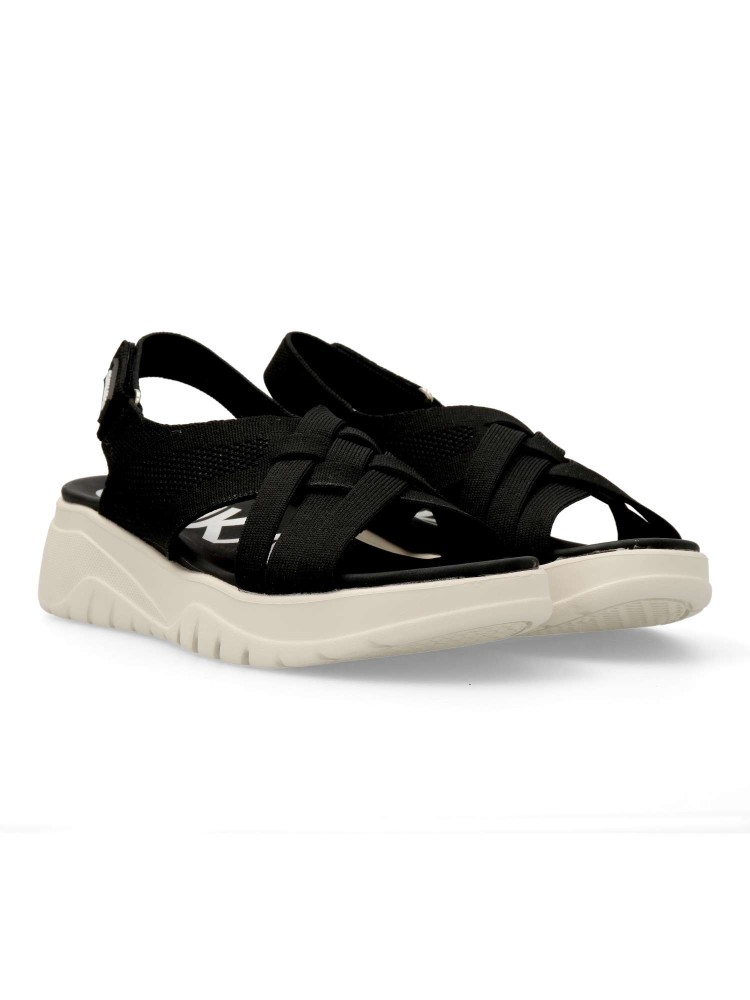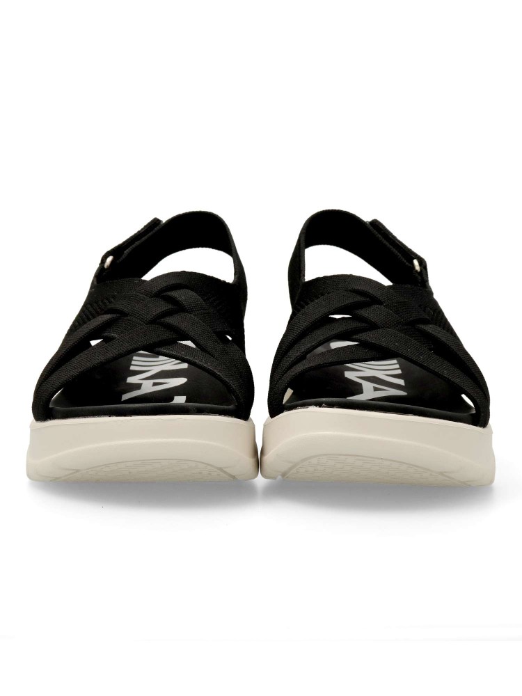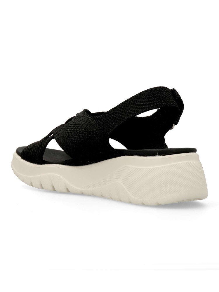 Sandalias de tejido que aporta transpirabilidad y ligereza al caminar. Suela deportiva de goma ligera y flexible. Destacan su diseño envolvente y el cierre adherente trasero que facilita el calce. Perfectas para acompañarte con comodidad en tu día a día.