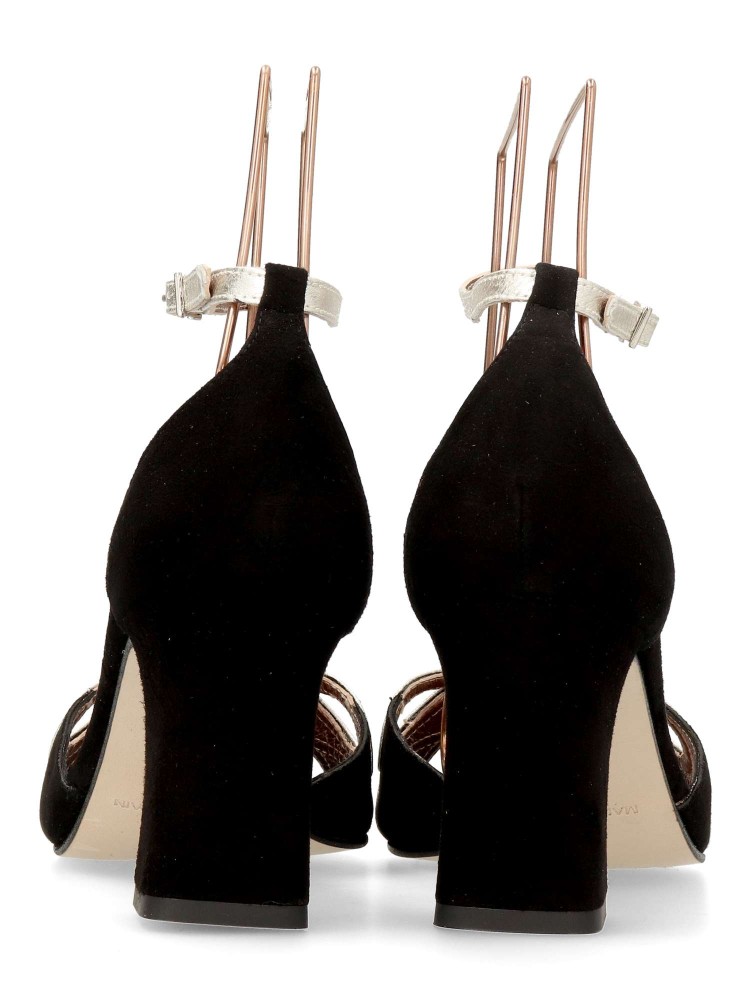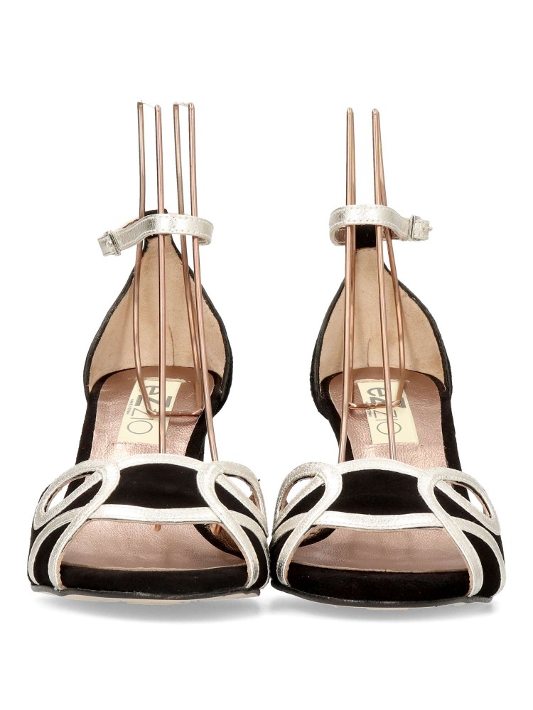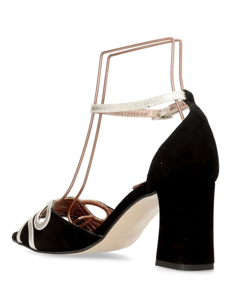 Sandalia de fiesta cómodas y elegantes, fabricadas en piel con tacón medio de 7 cm. y plantilla de piel acolchada. Elegante acabado terciopelo, una de las tendencias de este otoño-invierno, ideales tanto para novia como para invitadas.