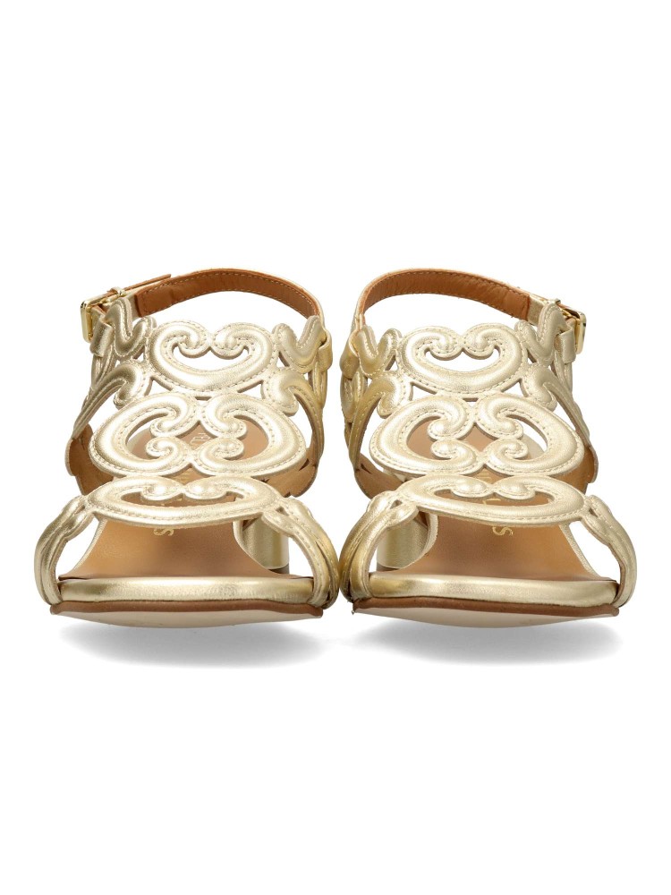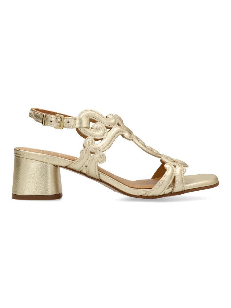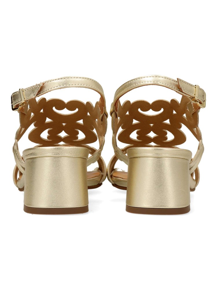 Sandalia de fiesta metalizada para mujer, fabricada en piel. Modelo de tiras con cierre de hebilla. Tacón de 5 cm. de altura. Estilo único que envuelve el pie para crear un escote elegante. Modelo elegante que estiliza gracias a su diseño especial.