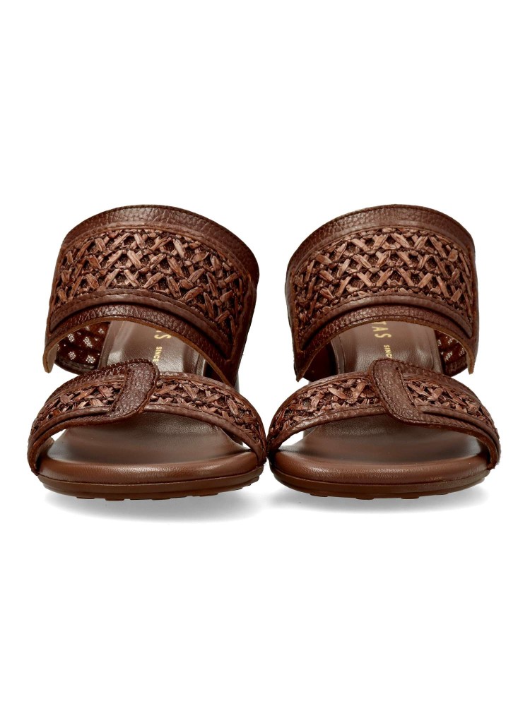 Sandalia mule de rafia con dos tiras anchas. Fabricado en rafia marrakech, combinada con piel.Tacón efecto madera de 7 cm. Tecnología TRIFLOW, que aporta flexibilidad y confort en la pisada. La mejor apuesta para cualquier ocasión.