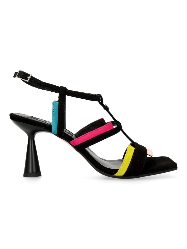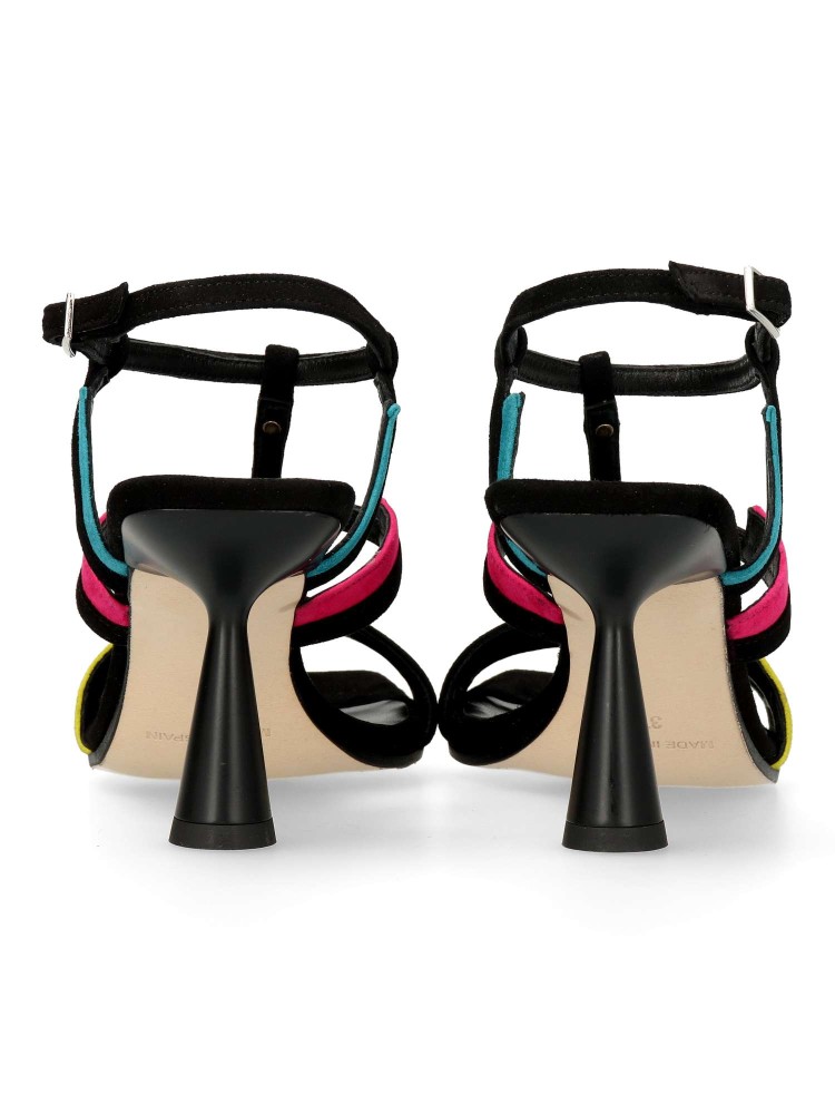 Sandalia de fiesta cómodas y elegantes, fabricadas en piel ante con tacón fino de 7 cm. y plantilla de piel acolchada. Elegante acabado aterciopelado, una de las tendencias de este otoño-invierno, ideales tanto para madrinas como para invitadas a bodas.