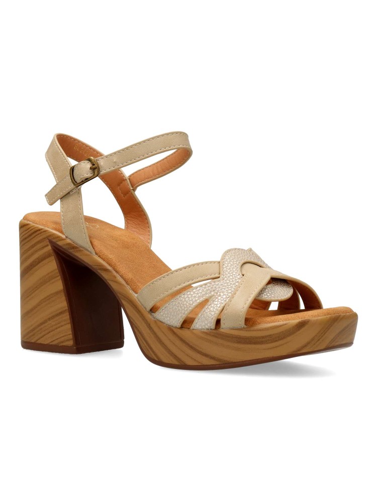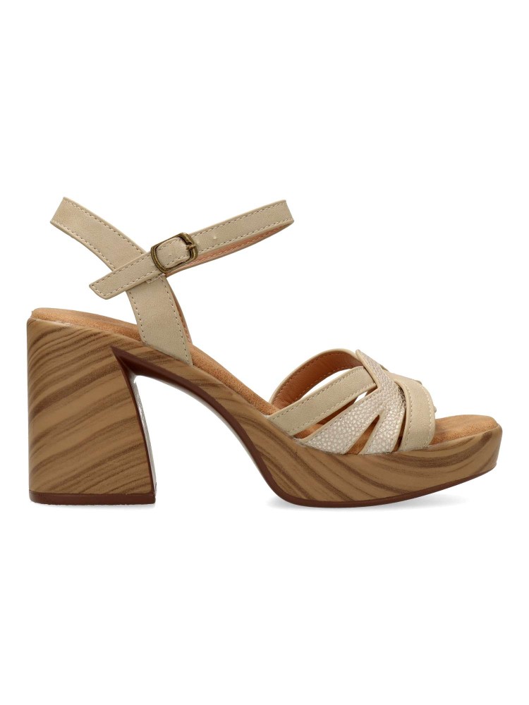 VANESSA Sandalia tacón ancho efecto madera
