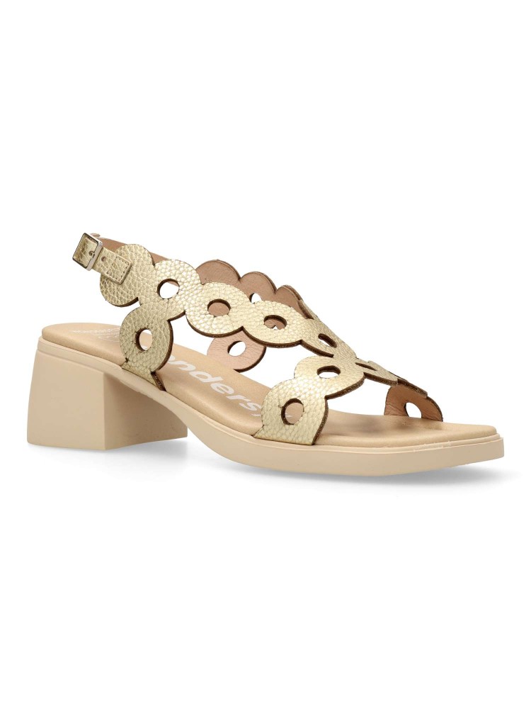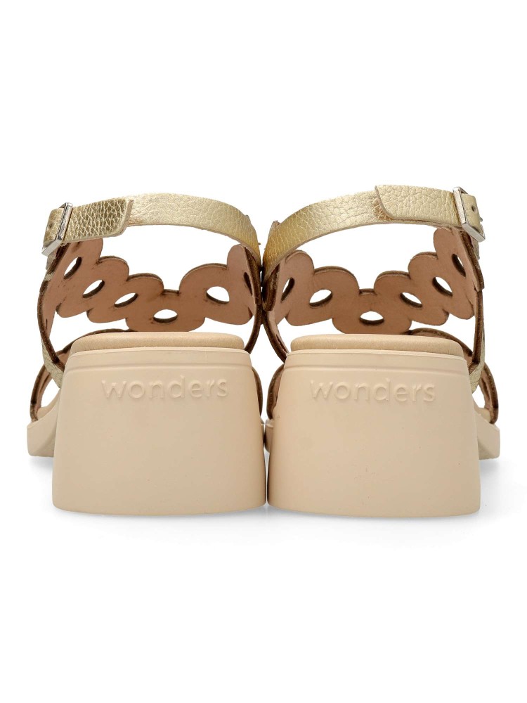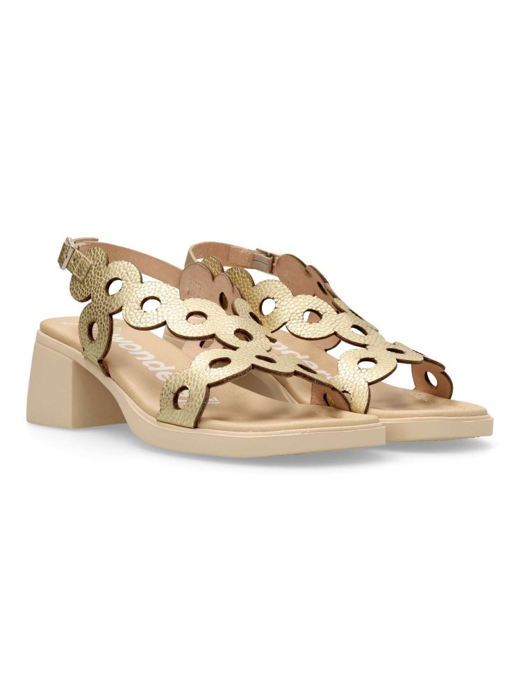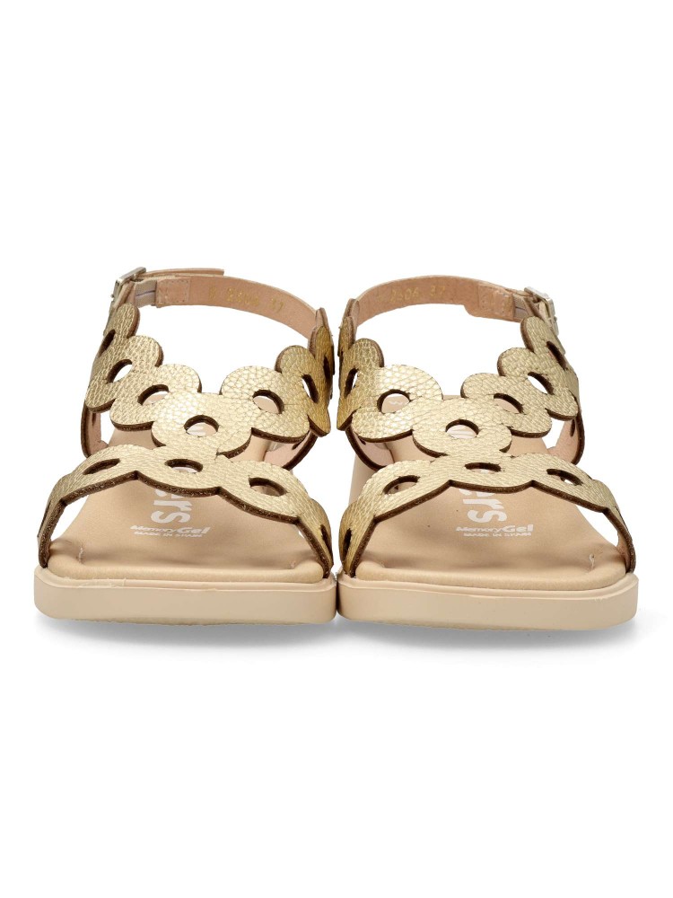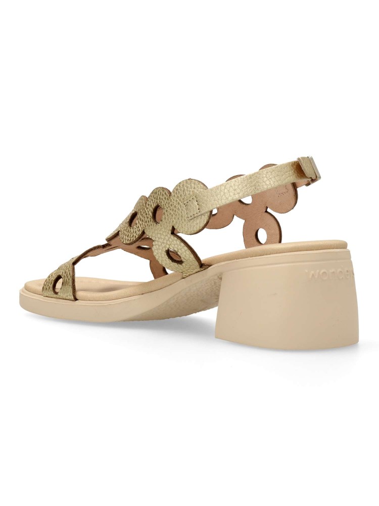 Sandalia de fiesta Libertad para mujer, con diseño de tiras entrelazadas de forma elegante. Modelo cómodo, fabricado en piel vacuno color platino, con suela de goma. Planta MemoryGel. Tacón ancho de 5 cm. Tecnología WondersFly.
