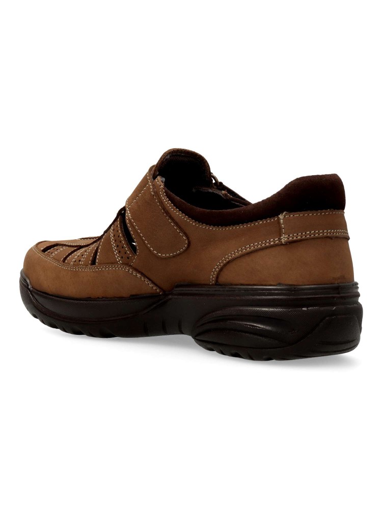 Sandalia de hombre, con cierre adherente. Pensada para trekking ligero y uso urbano. Fabricada en piel Nobuck con suela de poliuretano, ultraligera y resistente. Plantilla acolchada y extraíble. Calzado sport imprescindible, un básico para el verano.