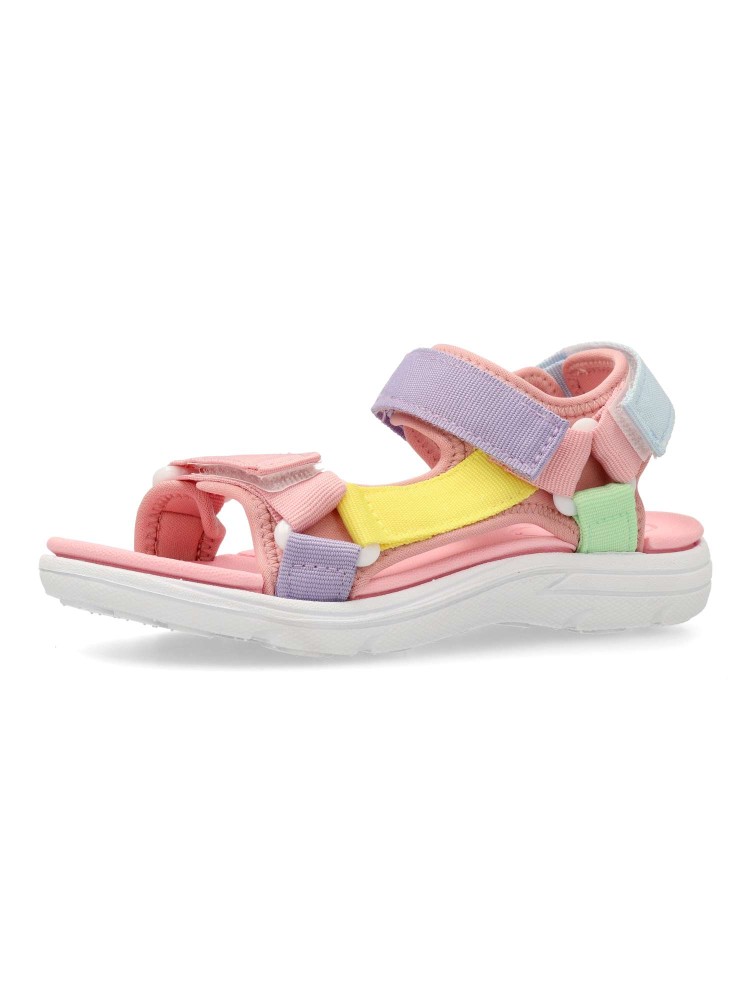 Sandalia deportiva de niña, estilo casual. Cierre adherente ajustable. Modelo cómodo, fabricado en textil multicolor, con suela de goma EVA ligera y flexible. Máximo confort en una sandalia californiana con un diseño fresco y muy original.