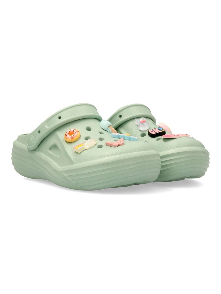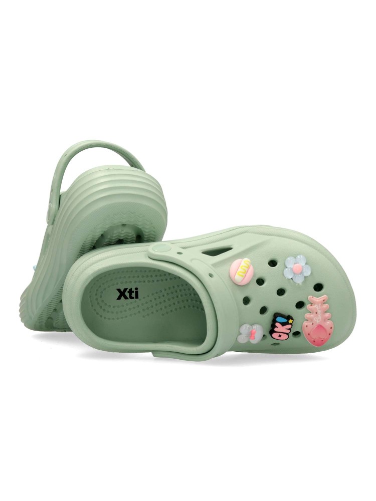 Zuecos de niña XTI Kids, con diseño práctico y cómodo. Su suela de goma garantiza estabilidad y confort, convirtiéndolos en la opción ideal para el día a día. Charms extraíbles que convertirá su calzado favorito en un juego. Certificado vegano.