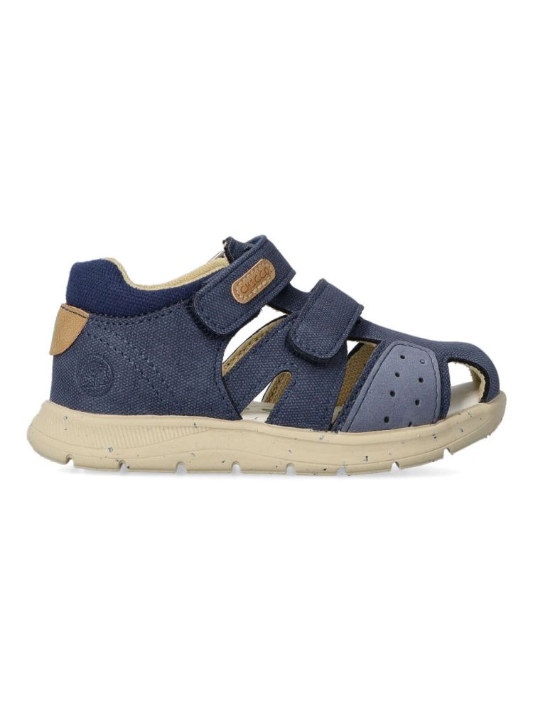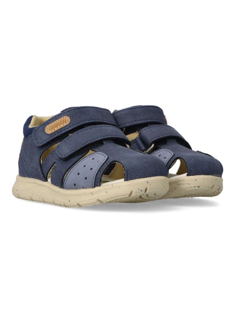 Sandalia cangrejera cómoda de niño. Fabricada en material sintético con suela de goma. Modelo práctico, transpirable, ligero y flexible. Sandalia deportiva cerrada, con cierre de velcro. Color marino. Diseño, confort y versatilidad para niños.