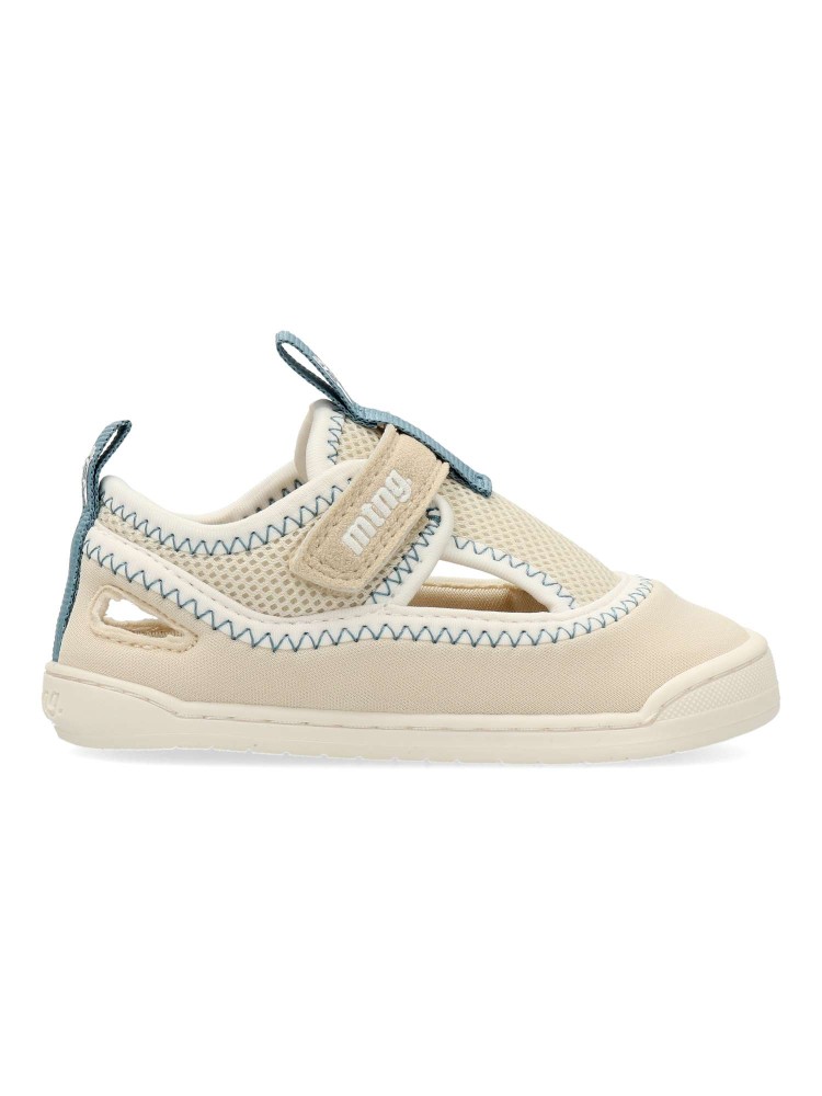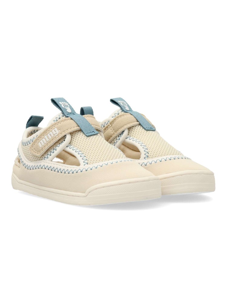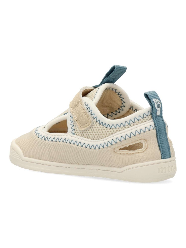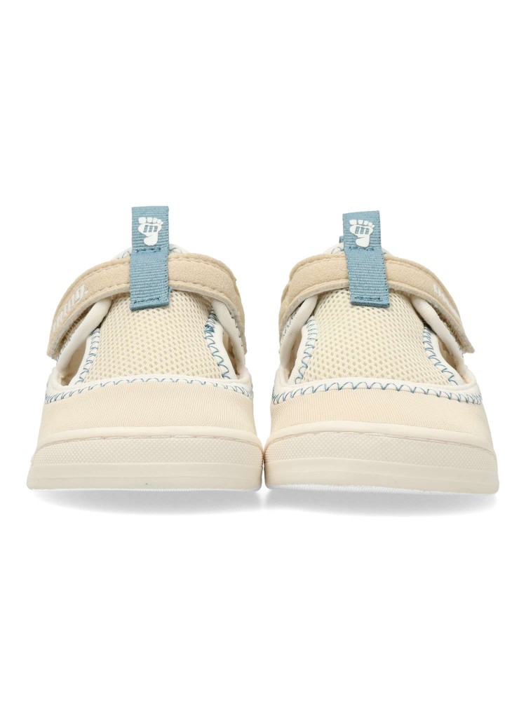 Sandalia deportiva transpirable Free Mustang para bebes. Zero Drop, plantilla extraible, puntera ancha y flexible. Respeta el natural desarrollo del pie del pequeño. Cierre adherente. Color arena. Inspiradas en el estilo cangrejeras.
