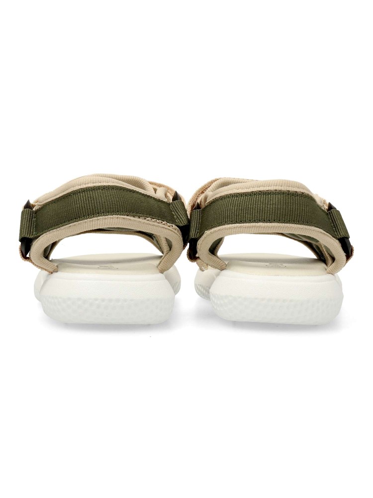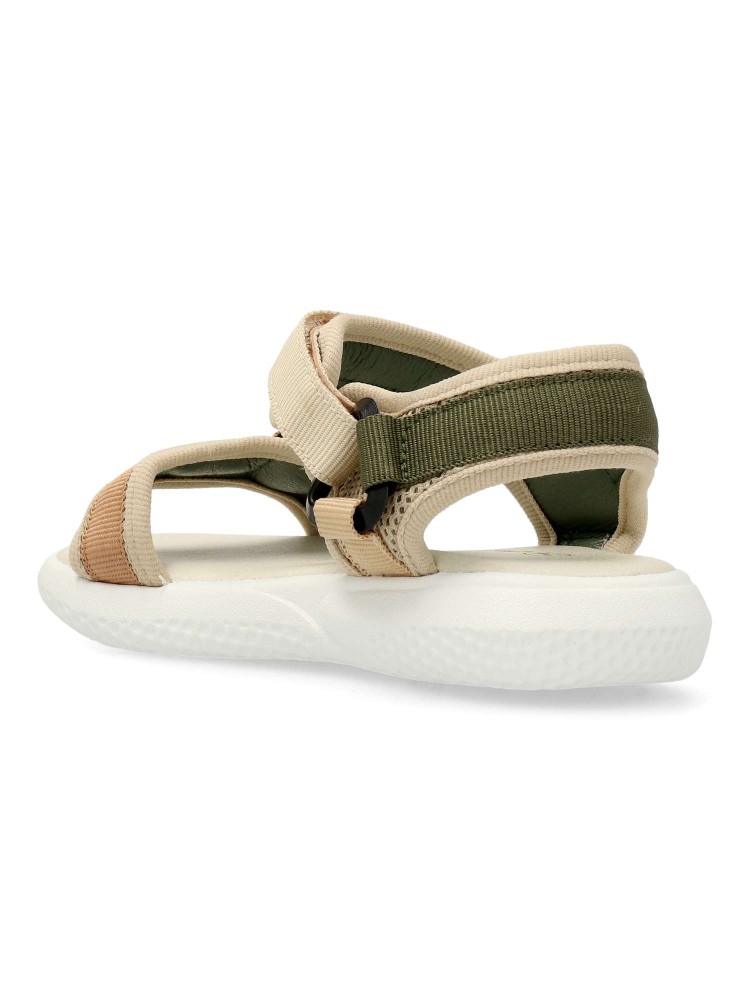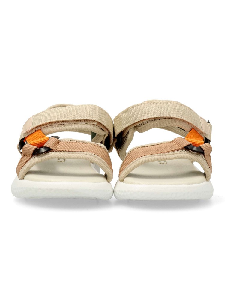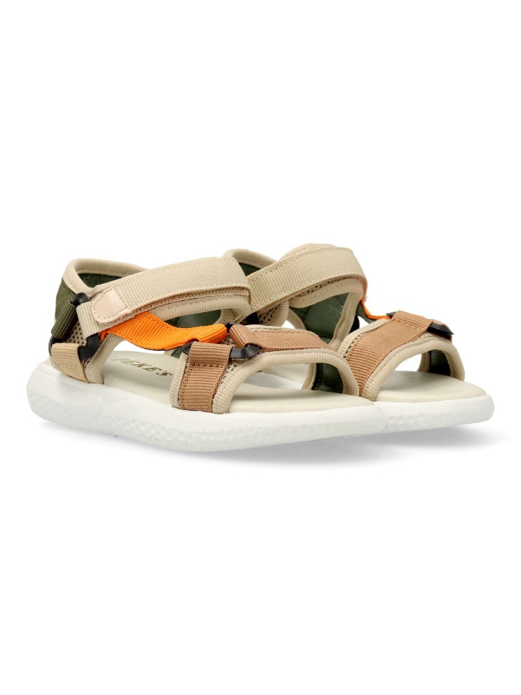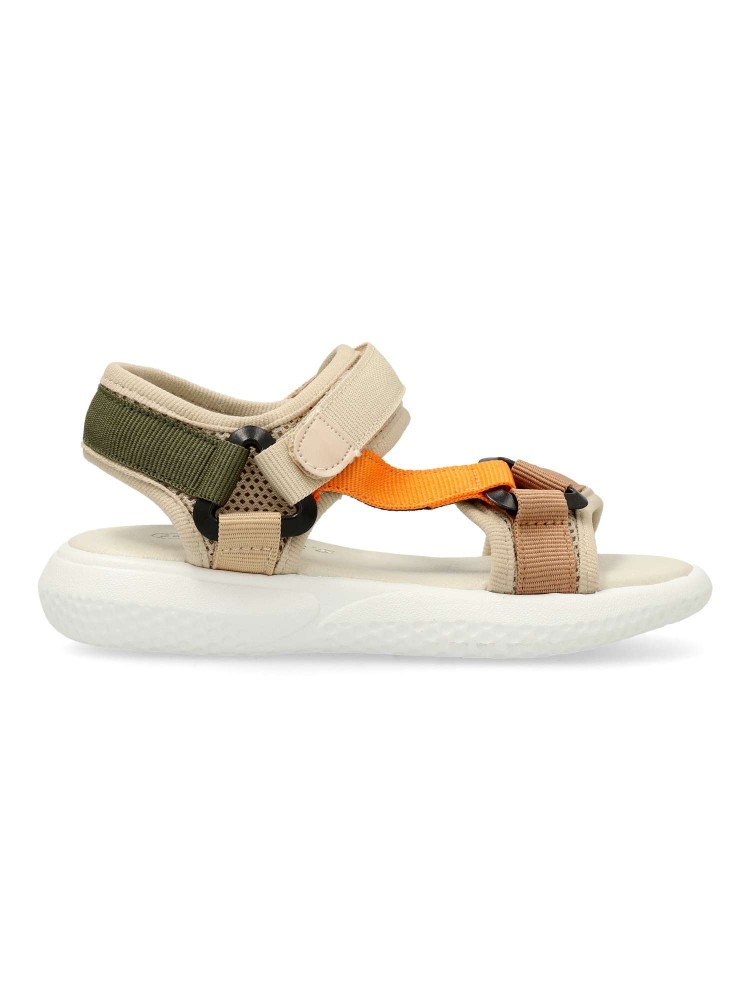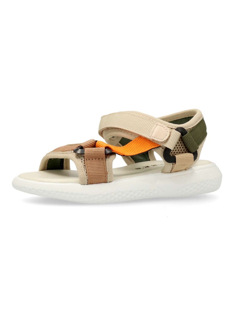 Sandalia deportiva de niña, con cierre adherente. Estilo casual, fabricado en textil con suela de goma blanca ligera y flexible. Planta acolchada. Color kaki-beige. Diseño y confort, ideal para looks de verano. PEKE´S By Vanessa.