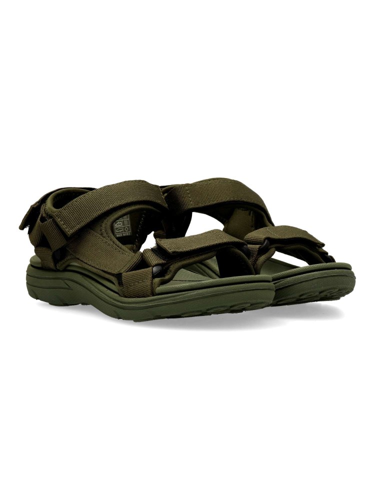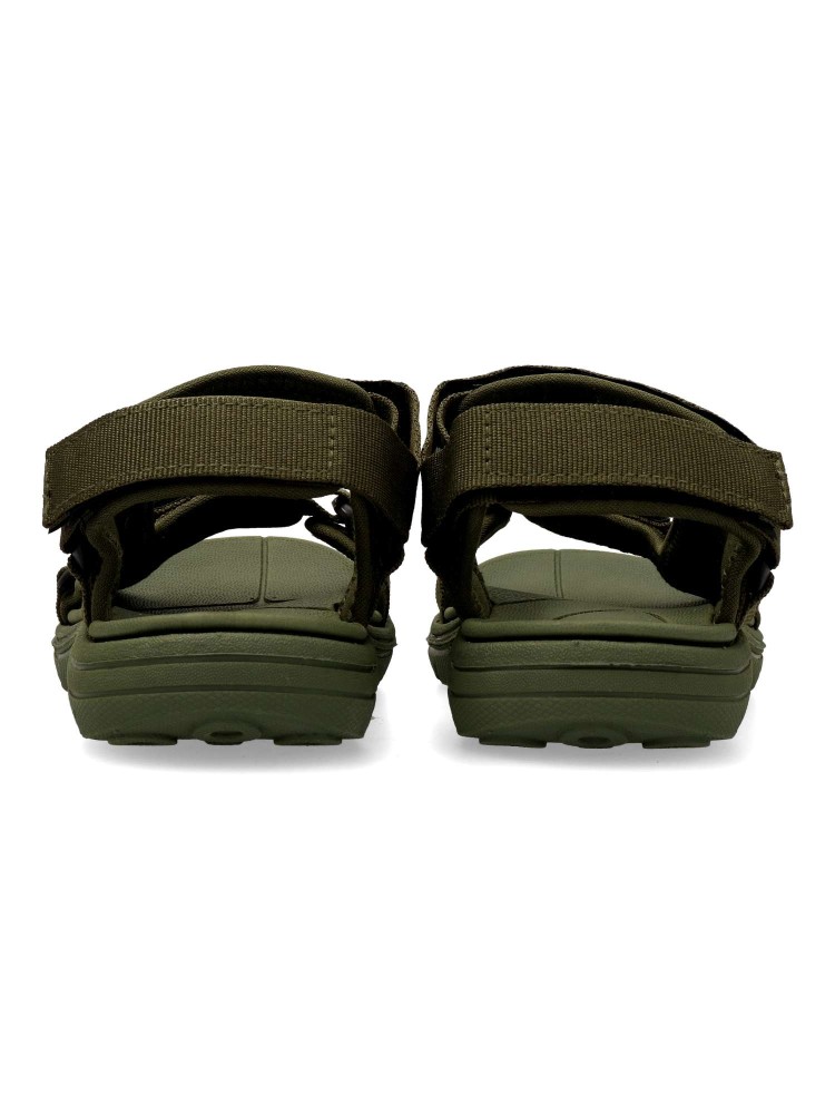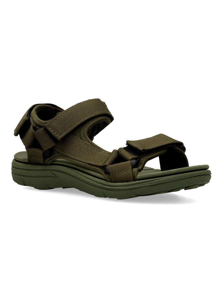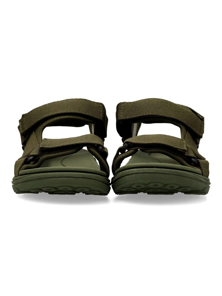 Sandalia deportiva de niño, estilo casual. Cierre adherente ajustable. Modelo cómodo, fabricado en textil color kaki, con suela de goma EVA ligera y flexible. Máximo confort en una sandalia californiana con un diseño fresco y muy original.