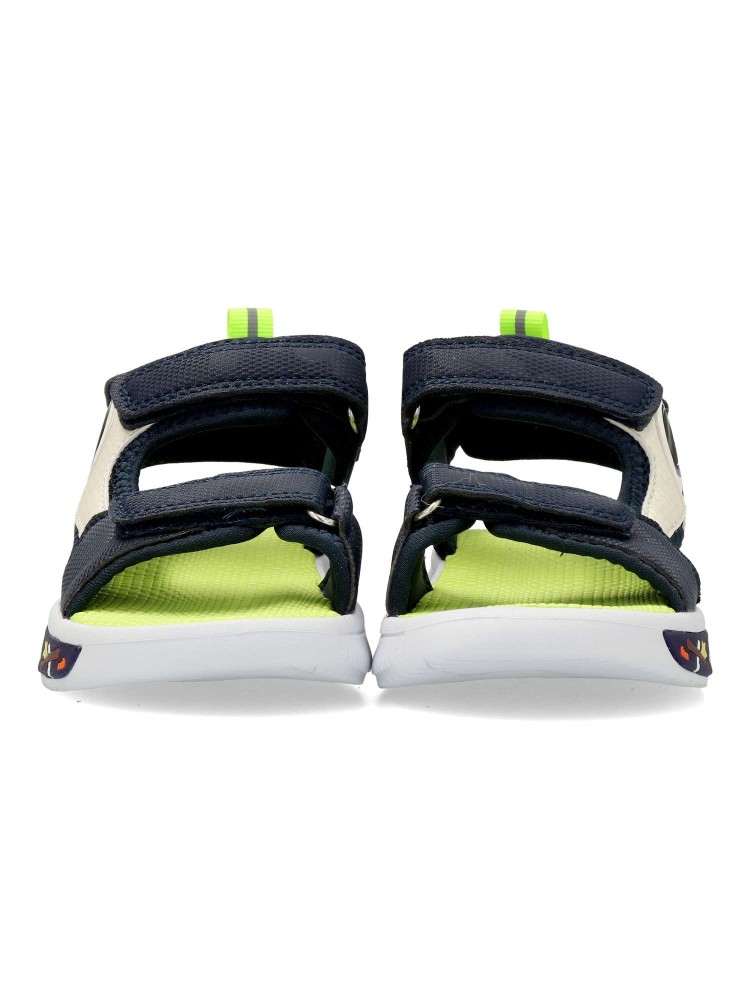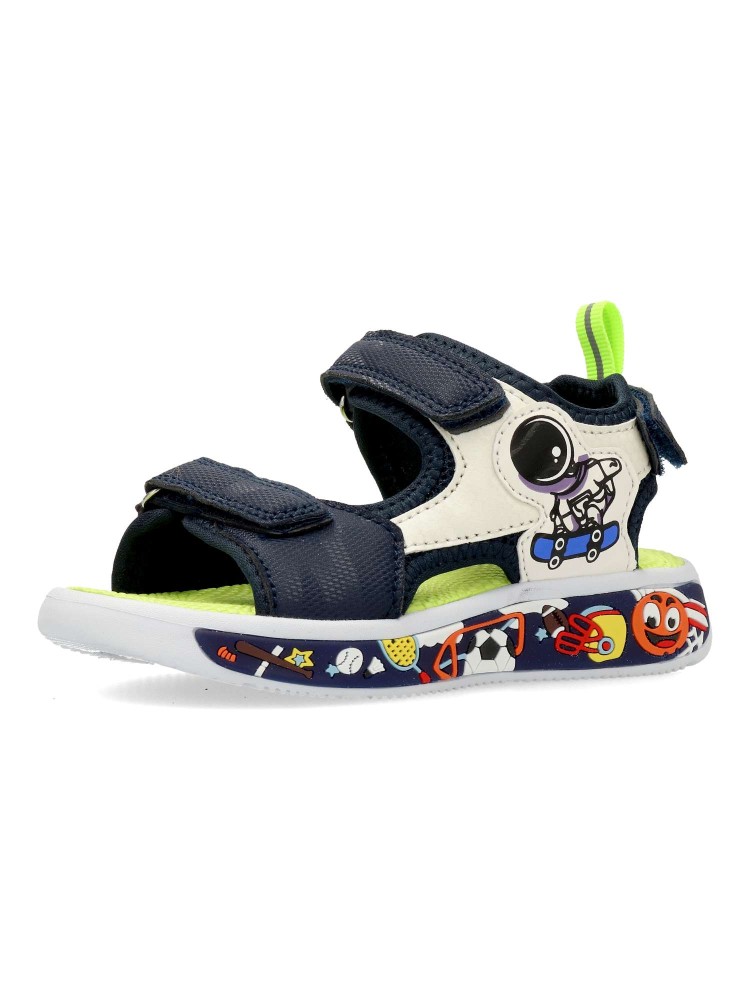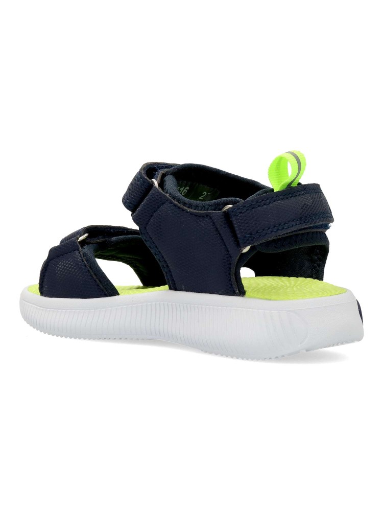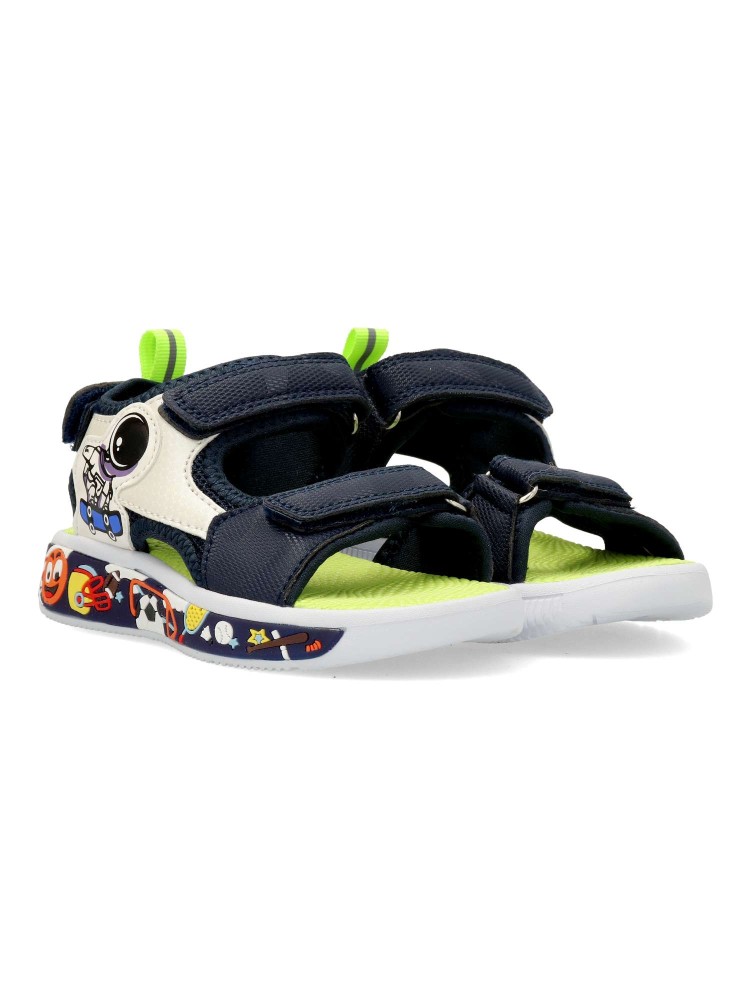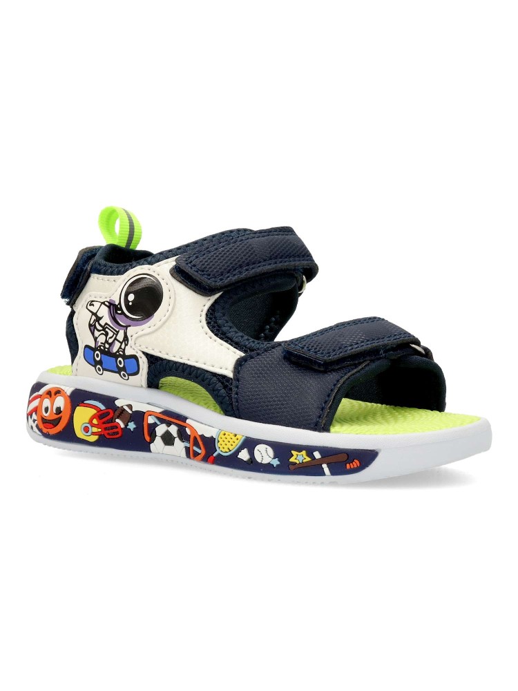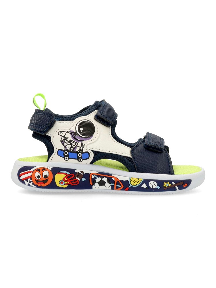 Sandalia deportiva de niño, estilo casual. Ajuste de tiras adherentes. Modelo cómodo, fabricado en piel sintética, con suela de goma flexible y ligera. Planta acolchada. Color marino. Californiana versátil, para el disfrute y confort de los niños.
