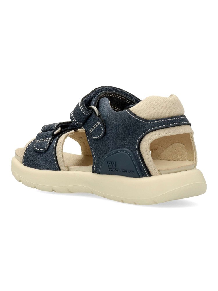 Sandalia californiana cómoda para niño. Fabricadas en piel y textil, con suela de goma. Color petroleo. Cierre adherente. Modelo transpirable y flexible con plantilla acolchada de microfibras antibacterias. Disfrute y confort para niños. Biomecanics.