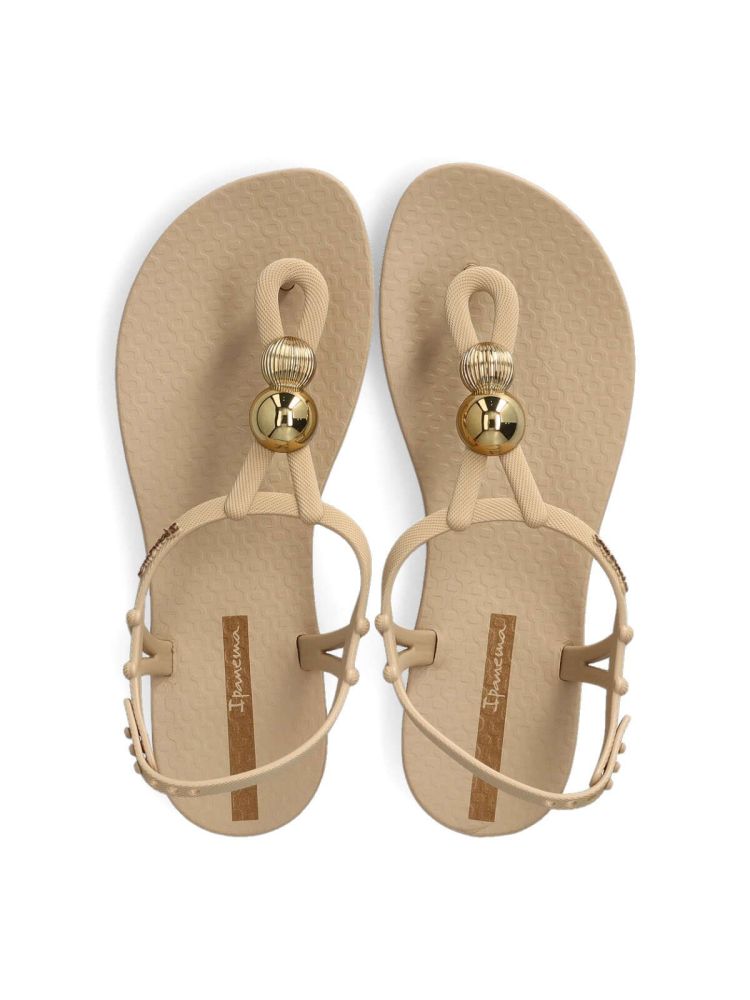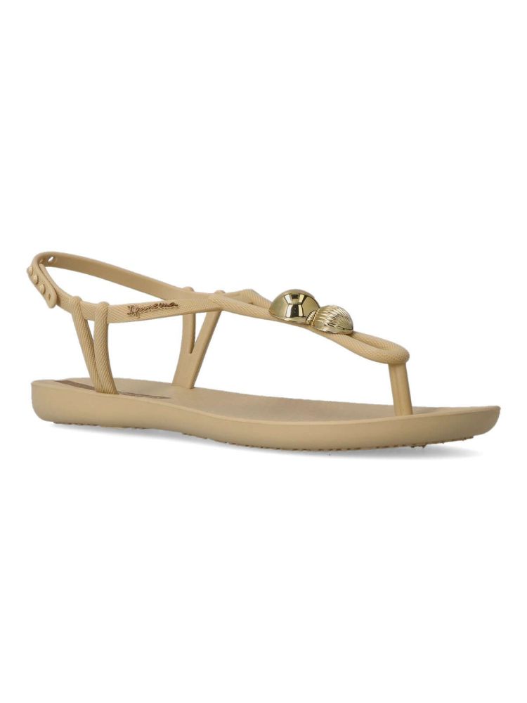 Chanclas de playa cómodas para mujer. Chanclas tipo sandalias, ideales para la playa o la piscina. Suela de goma flexible, ligera y antideslizante. Sandalias brasileñas innovadoras y elegantes. Color beige. Detalle decorativo metalizado. 100% Vegano.