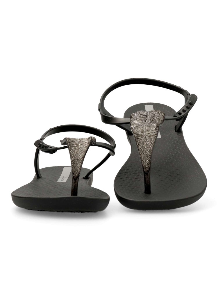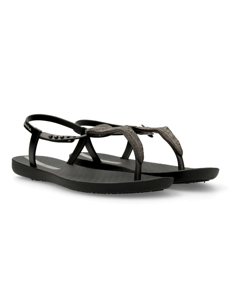 Sandalia de playa cómoda para mujer. Chanclas tipo sandalias con brillo decorativo. Diseño original, ideales para el verano. Suela de goma flexible y ligera. Chanclas brasileñas innovadoras y elegantes. Disponible en color negro. IPANEMA.