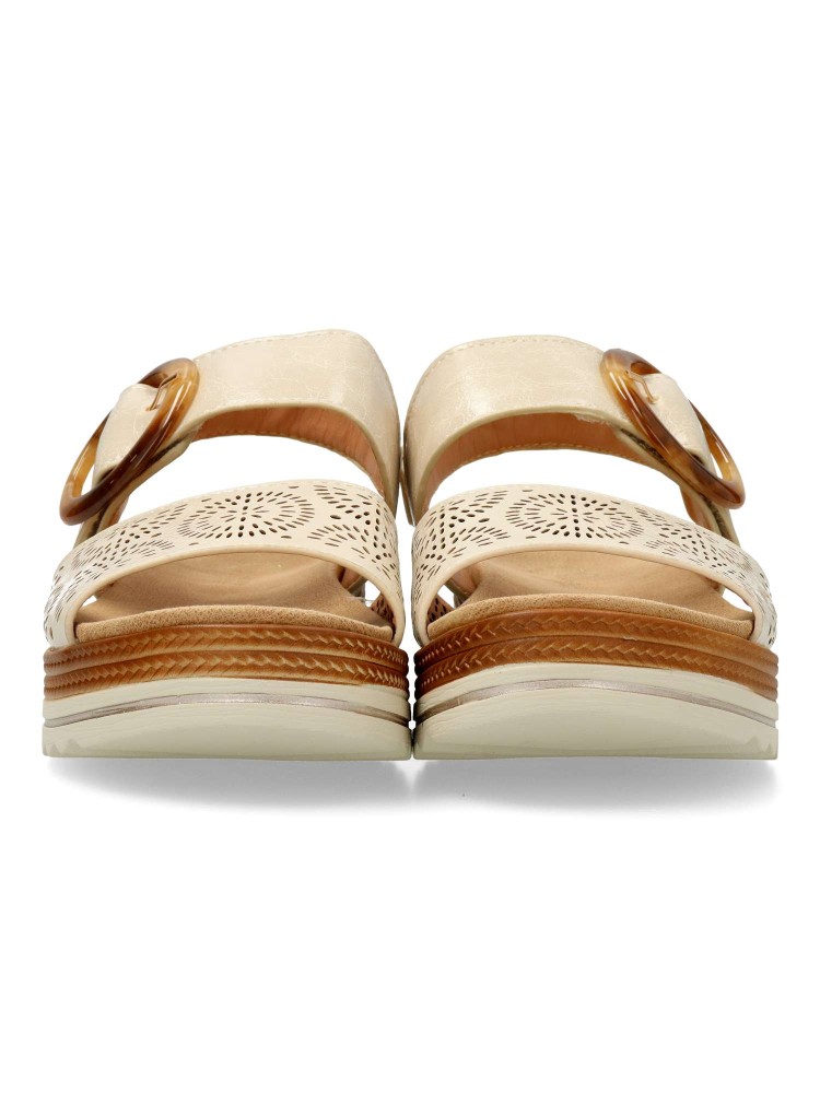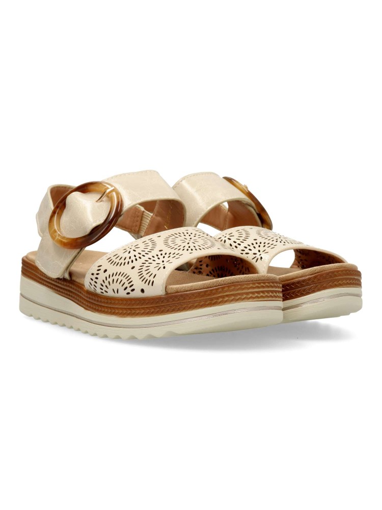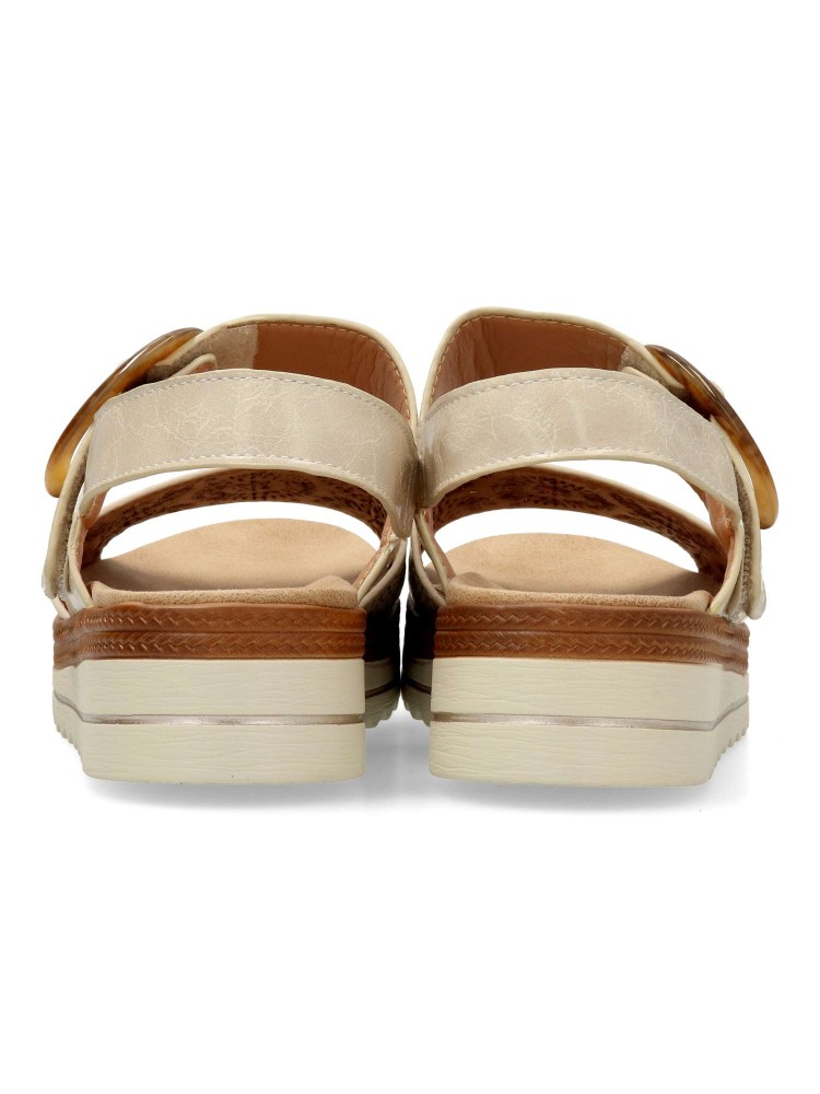 Sandalia cómoda de mujer, con ajuste de tira adherente. Fabricado en piel sintética. Suela de goma ligera y flexible. Planta acolchada. Hebilla decorativa. Máximo confort, en una sandalia versátil, fácil de combinar, ideal en tus paseos de verano.